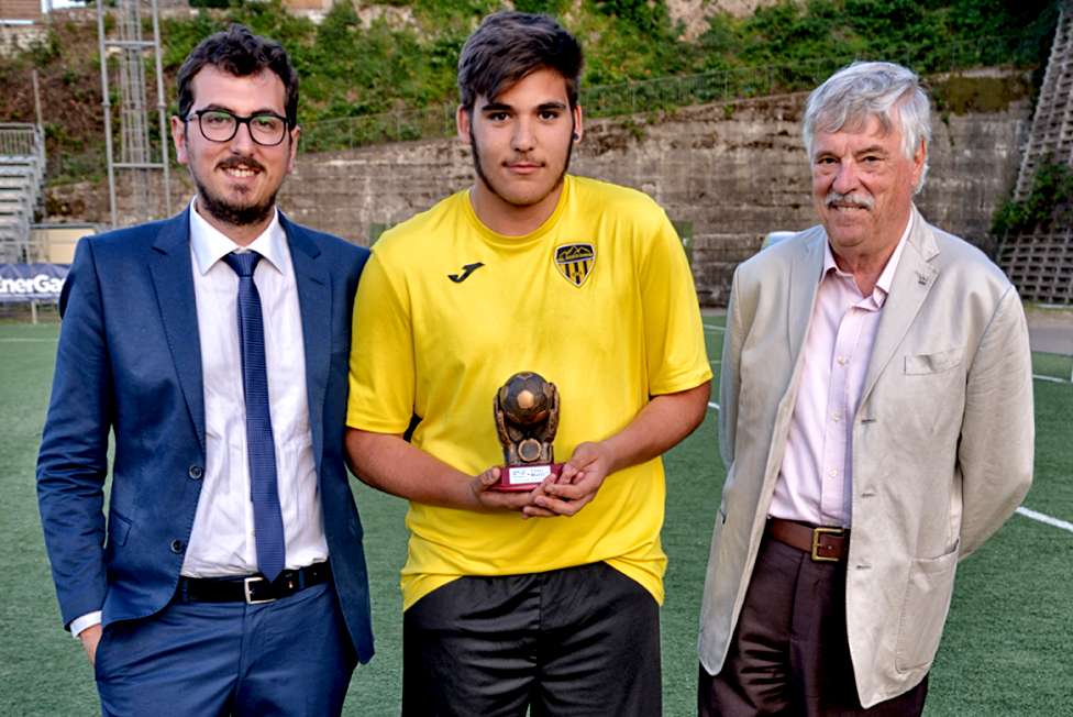(MeridianaNotizie), Roma, 5 giugno 2017- Giornate intense per la Polisportiva Monti Cimini, che ha appena chiuso i battenti dell’organizzazione della prima edizione del memorial Maurizio Melli. Al “Celso Perugini” di Soriano nel Cimino il torneo dedicato agli allievi è stato vinto dalla Viterbese Castrense, allenata dall’ex difensore del Cagliari Mauro Valentini; i viterbesi in finale hanno scomfitto la Totti soccer school (3-1) guidata da Rino Finelli. Al terzo posto l’Accademia calcio Frosinone (allenata da Massimo Carroccia), che nella finale di consolazione ha sconfitto i padroni di casa della Polisportiva Monti Cimini guidati da Marco Feriozzi, 2-1. Gianmarco Caon della Viterbese ha vinto la classifica cannonieri; Daniele Della Vecchia, della Totti soccer school è stato eletto miglior giocatore della manifestazione; a Leonardo Morelli ( nella foto) della Polisportiva Monti Cimini il trofeo quale miglior portiere. Presenti alle premiazioni il delegato Coni Viterbo Renzo Lucarini, il sindaco e l’assessore allo sport di Soriano nel Cimino Fabio Menicacci e Luciano Perugini, il procuratore sportivo Stefano Guercini e la dirigenza della Polisportiva Monti Cimini. Per la cronaca le semifinali avevano visto i successi dei viterbesi sui frusinati (4-1) e quelli della scuola calcio di Francesco Totti sui padroni di casa (3-0). Oltre quattrocento gli spettatori presenti sugli spalti per le finali di una manifestazione patrocinata dal Coni Lazio, dalla LND e dal Comune di Soriano nel Cimino-Nel frattempo il Comune di Vignanello si appresta a premiare la Polisportiva Monti Cimini, che ha raggiunto il traguardo del campionato di Eccellenza. Il sindaco Vincenzo Grasselli e il suo staff, nel tardo pomeriggio di giovedi 8 giugno (si comincia alle 19) onorano il club e i suoi giocatori, evidenziando l’importanza di una sinergia sportiva creata ad hoc non più tardi di un anno fa e che ha di certo migliorato la qualità sociale della zona. Il Comune di Vignanello consegnerà attestati a calciatori e non, seguirà l’aperitivo di circostanza. ( A cura di Cecilia Guglielmetti).