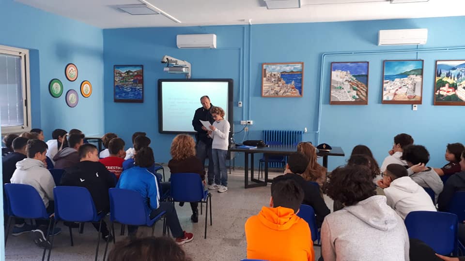 La platea, suddivisa in due gruppi, era composta dalle classi III della scuola secondaria di primo grado, dalla sezione A alla sezione D per un totale di 130 alunni. Hanno curato l’evento due componenti del gruppo di lavoro, il Vice Ispettore De Luca Marco ed il Sovrintendente Capo Graziano Stefano a cui va un caloroso abbraccio.