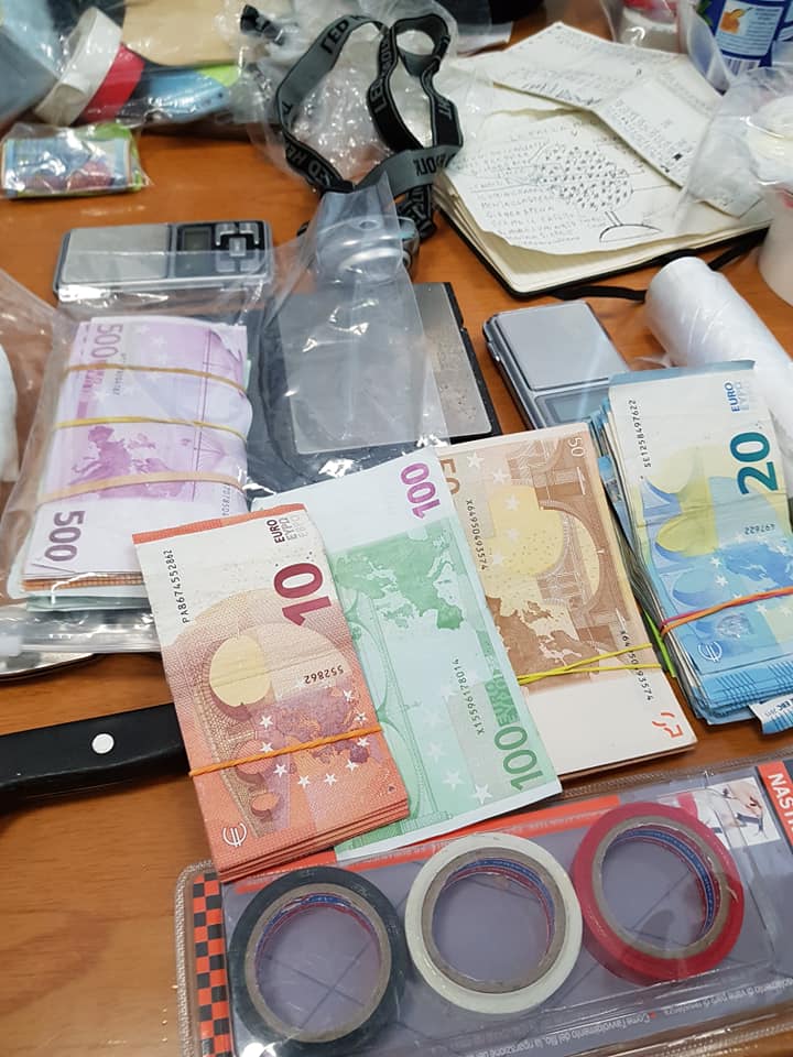 In particolare in un appartamento ubicato a Borgo Bainsizza, veniva rinvenuta la considerevole somma di circa 20,000 euro in banconote di vario taglio e 1300 euro in monete, materiale per il confezionamento di dosi, bilancini di precisione nonché arnesi utilizzati per lo scasso di saracinesche di attività commerciali e di porte blindate di civili abitazioni.