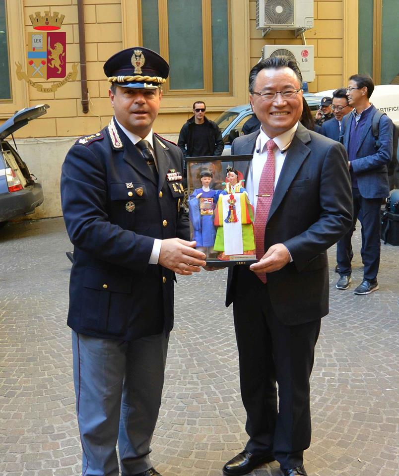 (MeridianaNotizie) Roma, 17 novembre 2018 – Per uno scambio informativo sull’organizzazione e sull’attività della Scuole di Perfezionamento delle Forze di Polizia, la delegazione dell’Università Nazionale della Polizia coreana guidata dal Direttore Sig. Sangjeong Lee, si è recata in visita presso la Questura di Roma.