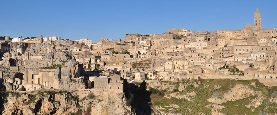 Lo scenario della città di Matera è davvero unico e inimmaginabile: grotte abitate, scavate nella roccia che ne fanno due anfiteatri naturali: il Sasso Caveoso e il Sasso baresano. In pratica case, vicoli, chiese, scalinate, ballatoi, gradini e orti incastonati mirabilmente che ne fanno un fantastico esempio di ottimale sfruttamento delle risorse naturali, poiché tutto appare spesso come una via è anche un tetto e viceversa.