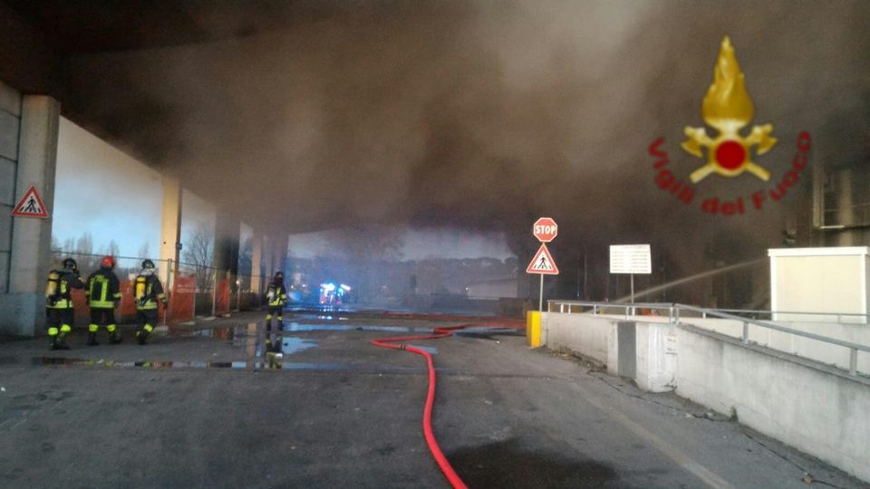 Fiamme su via Salaria a Roma. A bruciare un capannone di 2000 metri quadri utilizzato per la raccolta d’immondizia.