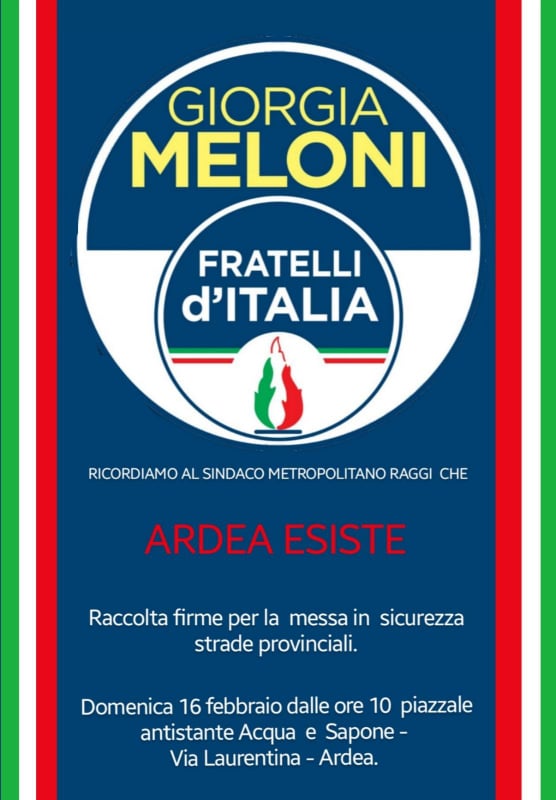 Home » “Ardea esiste”, Fratelli d’Italia organizza domenica una raccolta firme per la messa in sicurezza delle strade provinciali