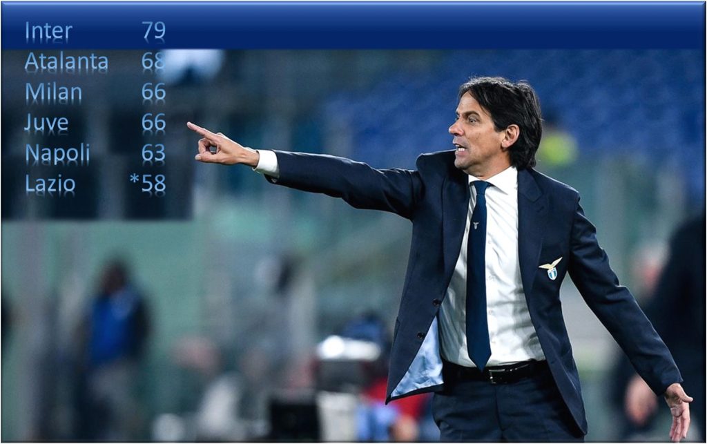 Impresa non facile, quella di raggiungere il quarto posto, condizionata, purtroppo, dalla gara di giovedì scorso contro il Napoli che, vuoi per errori arbitrali, vuoi per incapacità dei biancoclesti di reagire alla pressione dei partenopei, ha visto uscire la Lazio dal confronto con un sonoro 5 a 2. Forse troppi i gol di scarto, stando a come è andata la partita che si è decisa, probabilmente, sul rigore (dubbio) assegnato dall’arbitro Di Bello, fermato per un turno, quello della 33a giornata che si chiude oggi, evidentemente, per un arbitraggio più che discutibile nella gara del San Paolo (Stadio dedicato a Diego Armando Maradona dopo la sua prematura morte).
