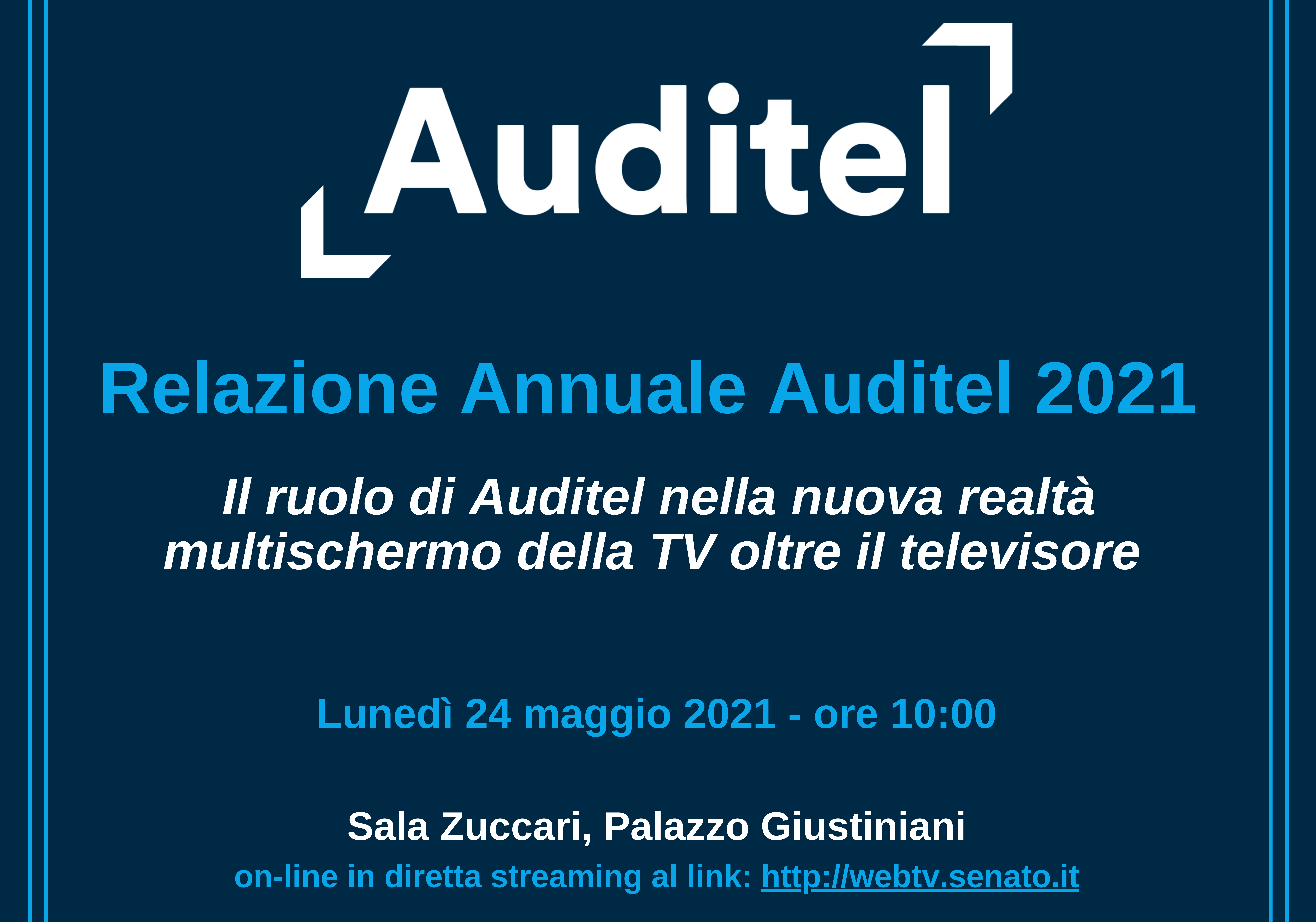 (MeridianaNotizie) Roma, 21 maggio 2021 – Lunedì 24 maggio 2021 , alle ore 10.00, presso la Sala Zuccari di Palazzo Giustiniani a Roma si terrà la presentazione della Relazione Annuale Auditel 2021 “Il ruolo di Auditel nella nuova realtà multischermo della TV oltre il televisore”.