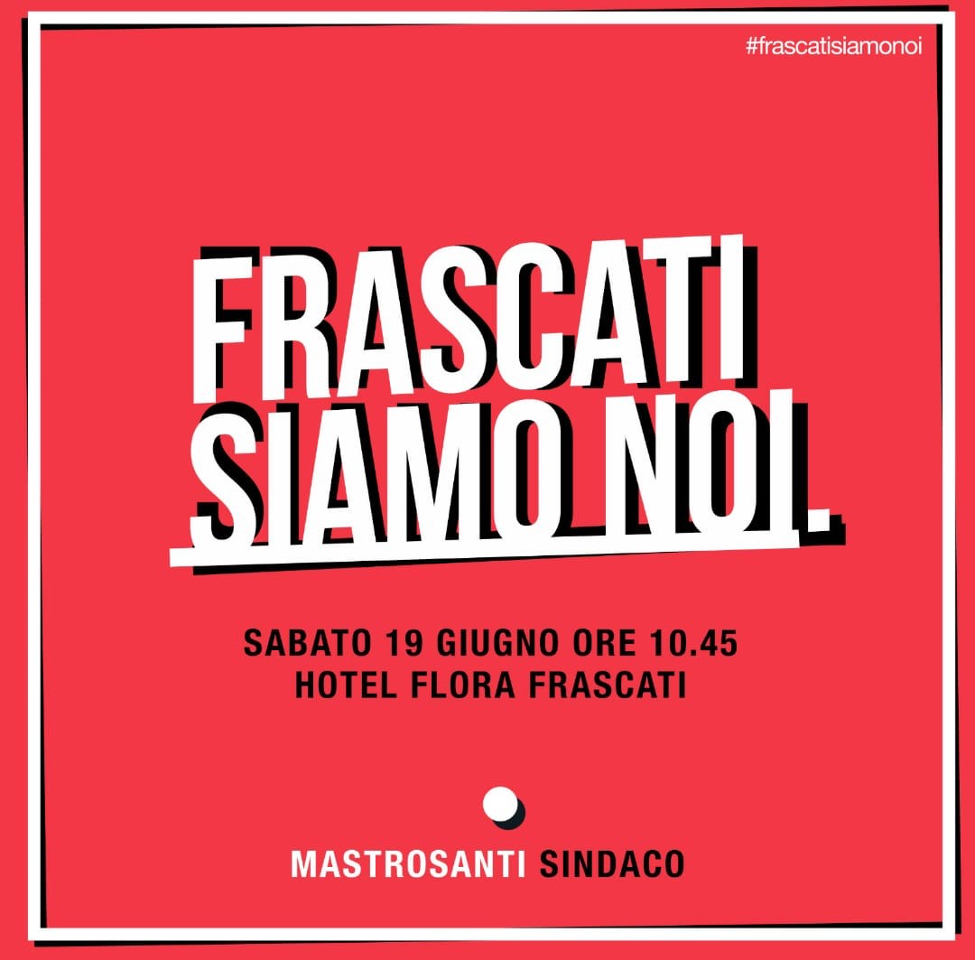 (MeridianaNotizie) “E’ con lo slogan ‘Frascati siamo noi’ che sarà presentata alla cittadinanza la candidatura a Sindaco di Frascati di Roberto Mastrosanti. L’appuntamento, aperto ai cittadini, le associazioni, il tessuto produttivo e la stampa, è per Sabato 19 giugno alle 10.45 presso l’Hotel Flora di Frascati”.