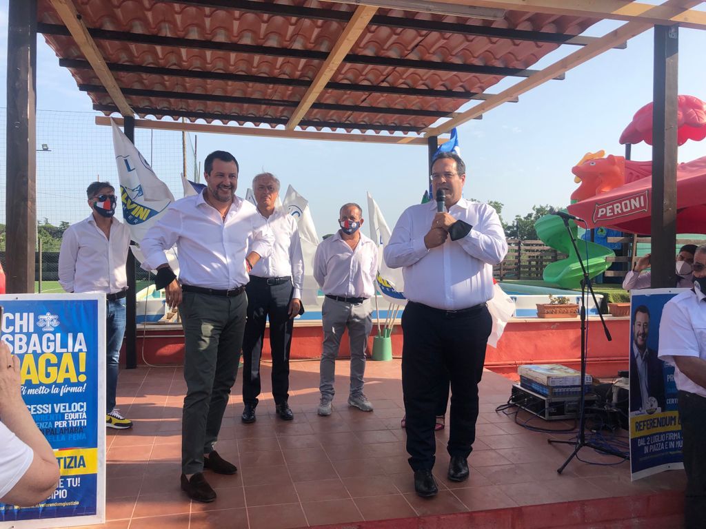 (MeridianaNotizie) Marino, 28 luglio 2021 – Si è da poco concluso a Marino l’incontro con il Segretario della Lega Matteo Salvini, in occasione della raccolta firma per il referendum sulla giustizia giusta. “Sono molto soddisfatto della numerosa partecipazione dei cittadini di Marino, questo mi dà la misura di quanto come Lega Provinciale si stia lavorando bene sui territori” – dichiara Tony Bruognolo Segretario Politico della Lega Provincia Roma Sud.Da oggi parte anche ufficialmente la campagna elettorale di Stefano Cecchi, candidato civico che la Lega ha deciso di sostenere convintamente, sotto la spinta del coordinatore locale Maurizio Forgetta e del direttivo di Marino. Siamo certi che la direzione intrapresa porterà a ottimi risultati dal punto di vista elettorale ed amministrativo. Ringrazio – conclude Bruognolo – il Segretario Matteo Salvini che anche oggi, come al solito, non si è sottratto all’appuntamento con il territorio”.