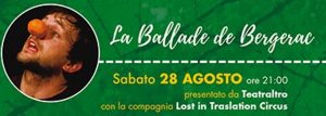 Sabato 28 alle 21 spazio alla “Ballade de Bergerac”, presentata da Teatraltro con la compagnia “Lost in Translation Circus”, nata nel 2008 da un’idea di alcuni diplomati alla Scuola di Circo di Londra.
