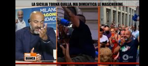 Anche il il meschino atteggiamento ieri sera adottato dal conduttore e giornalista televisivo Brindisi, nel programma “zona bianca” (clicca qui ) nei confronti del Senatore Paragone, di voler distorcere la realtà dei fatti, utilizzando ad arte delle immagini per fare gridare alla rivolta “fascista“, accostando lo stesso Senatore a frange di estrema destra nel corso delle manifestazioni che sono in atto in tutta l’Italia di coloro che non accettano l’imposizione del vaccino e la negazione della libertà, dimostrano che è stata accesa la miccia dell’odio di una polveriera che sta diventando sempre più corta.