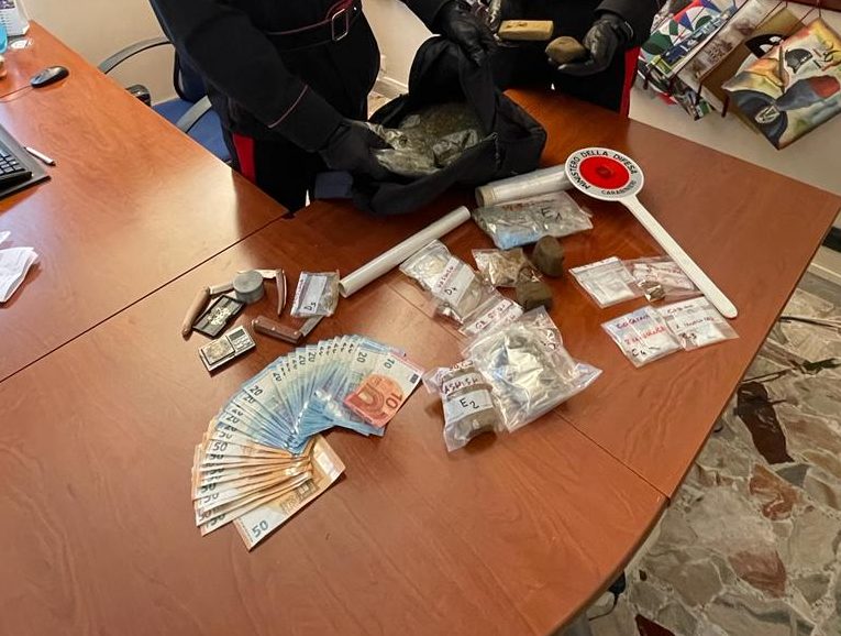 Entrati in casa, i militari hanno fermato la donna e l’altro coinquilino e hanno eseguito una perquisizione domiciliare rinvenendo altri  25 g. di cocaina, 500 g. di hashish e 50 g di marijuana, oltre a 1.270 euro in banconote di vario taglio, ritenuti provento dell’attività di spaccio.