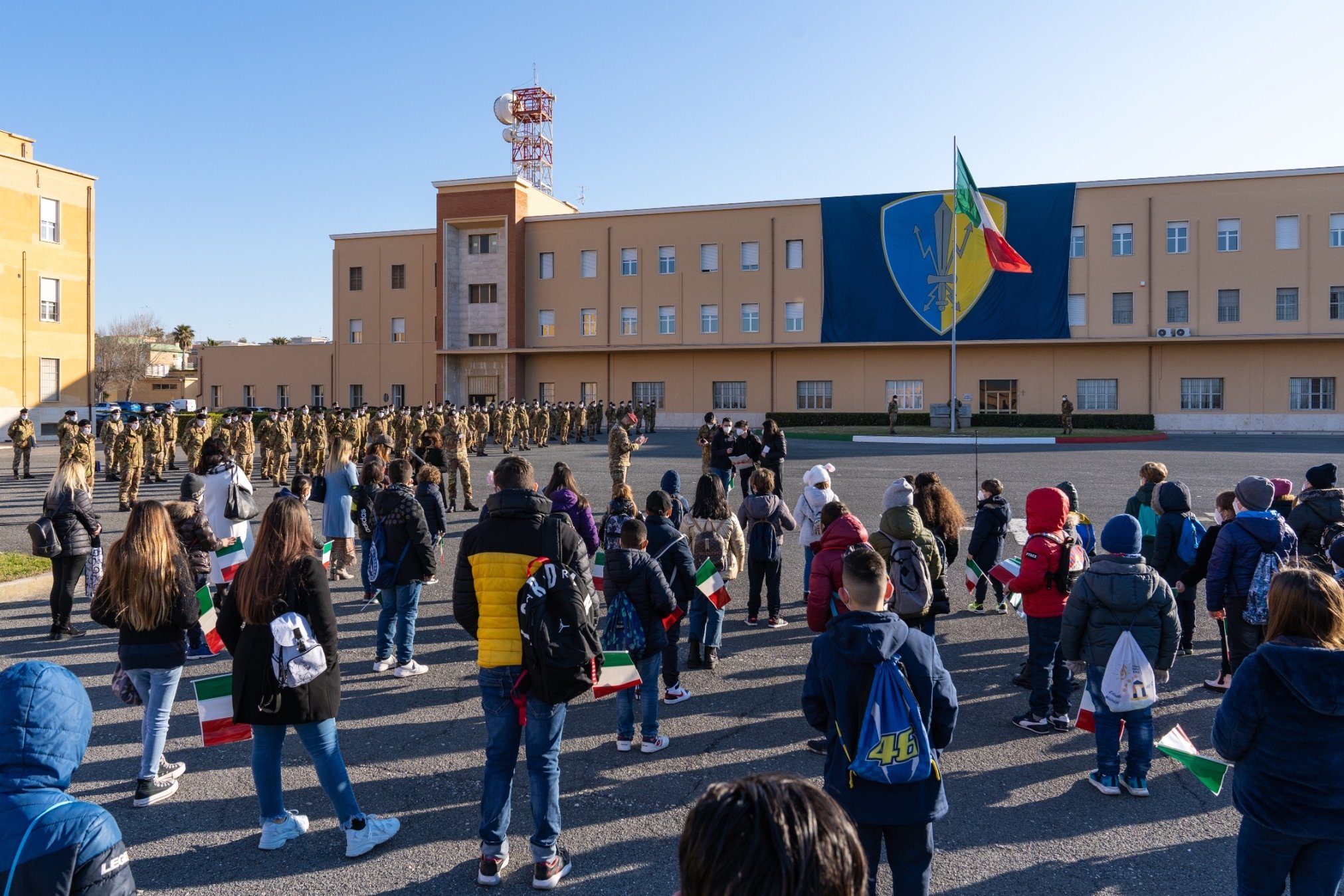 Scopo della visita è stato quello di avvicinare i giovani cittadini all’Esercito Italiano attraverso la cerimonia dell’Alzabandiera, uno dei momenti più alti e significativi, proseguita con il saluto ai presenti da parte del Comandante della Brigata, Generale Maurizio Fronda, con lo scambio di doni, la lettura di poesie e brani con cui gli studenti, di età compresa tra 8 e 13 anni, hanno voluto ringraziare gli uomini e le donne dell’Esercito.