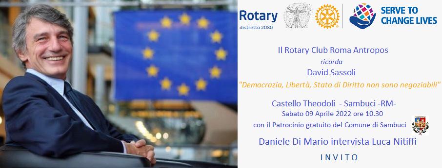 “Daniele Di Mario intervisterà Luca Nitiffi, l’uomo che per 14 anni è stato accanto a Sassoli nel ruolo di Consigliere Politico e che ha vissuto in simbiosi con lui. Ci Sarà il Deputato Europeo On. Antonio Maria Rinaldi e il Presidente del Consiglio Regionale del Lazio On. Marco Vincenzi”.