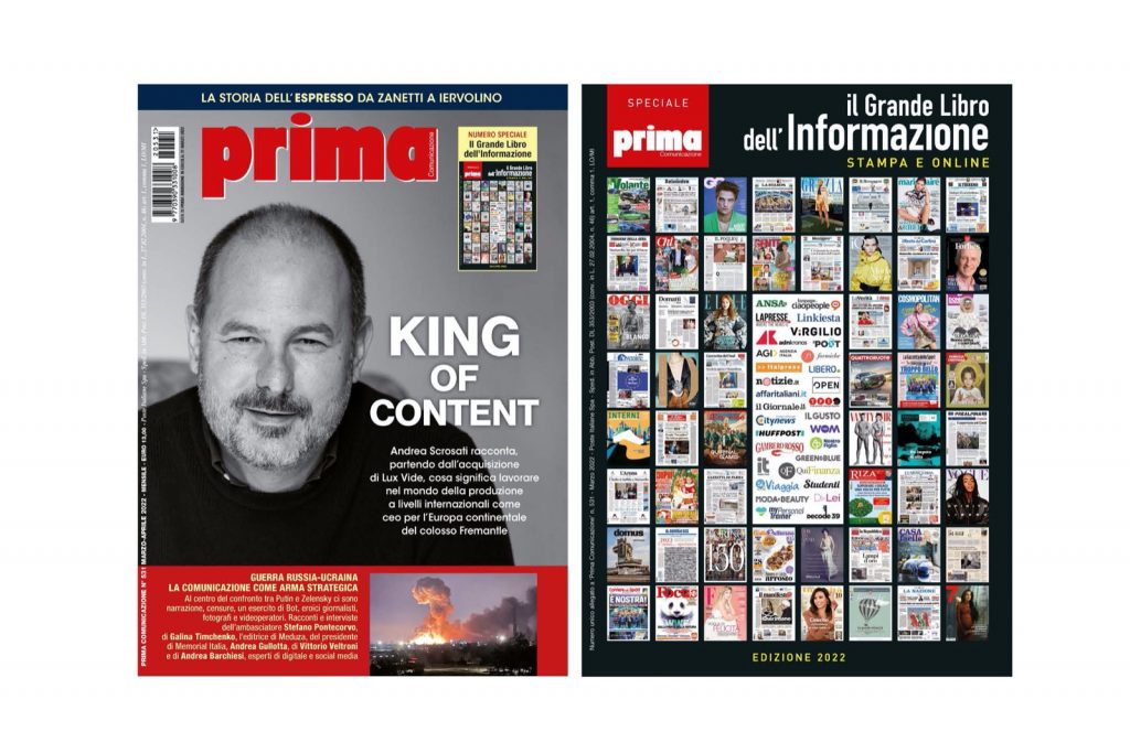 ‘Prima Comunicazione’ è in edicola con l’edizione 2022 del ‘Grande libro dell’Informazione stampa e online‘. Mensile e allegato sono disponibili in digitale, per pc, smartphone e tablet.