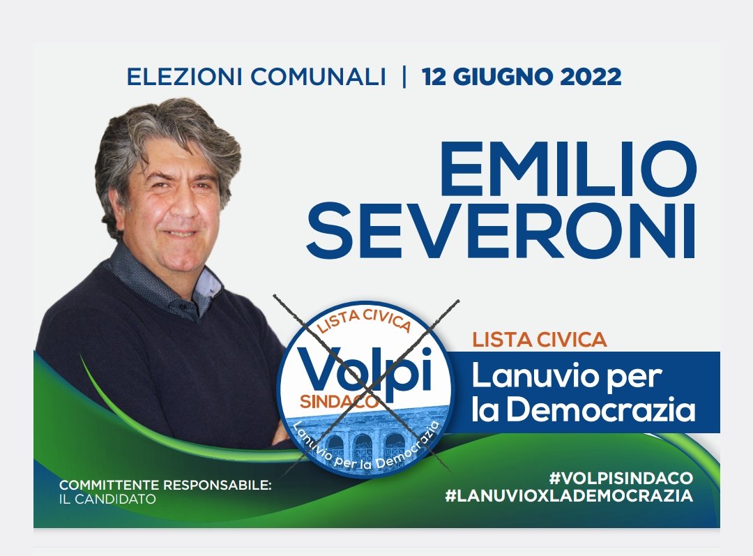 Home » Elezioni, Emilio Severoni candidato nella Lista Lanuvio per la Democrazia per Andrea Volpi Sindaco