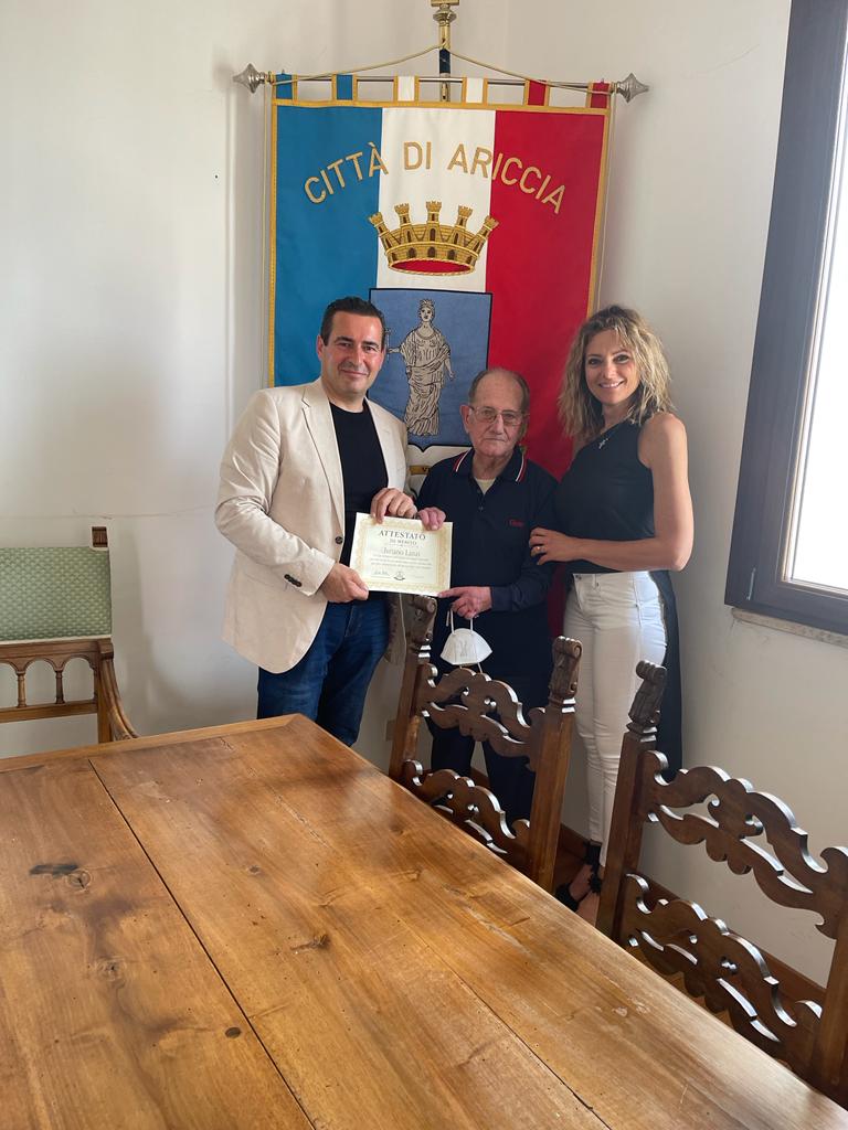 ARICCIA, TARGA DI MERITO A IVRIANO LANZI STORICO COMMERCIANTE DEL CENTRO