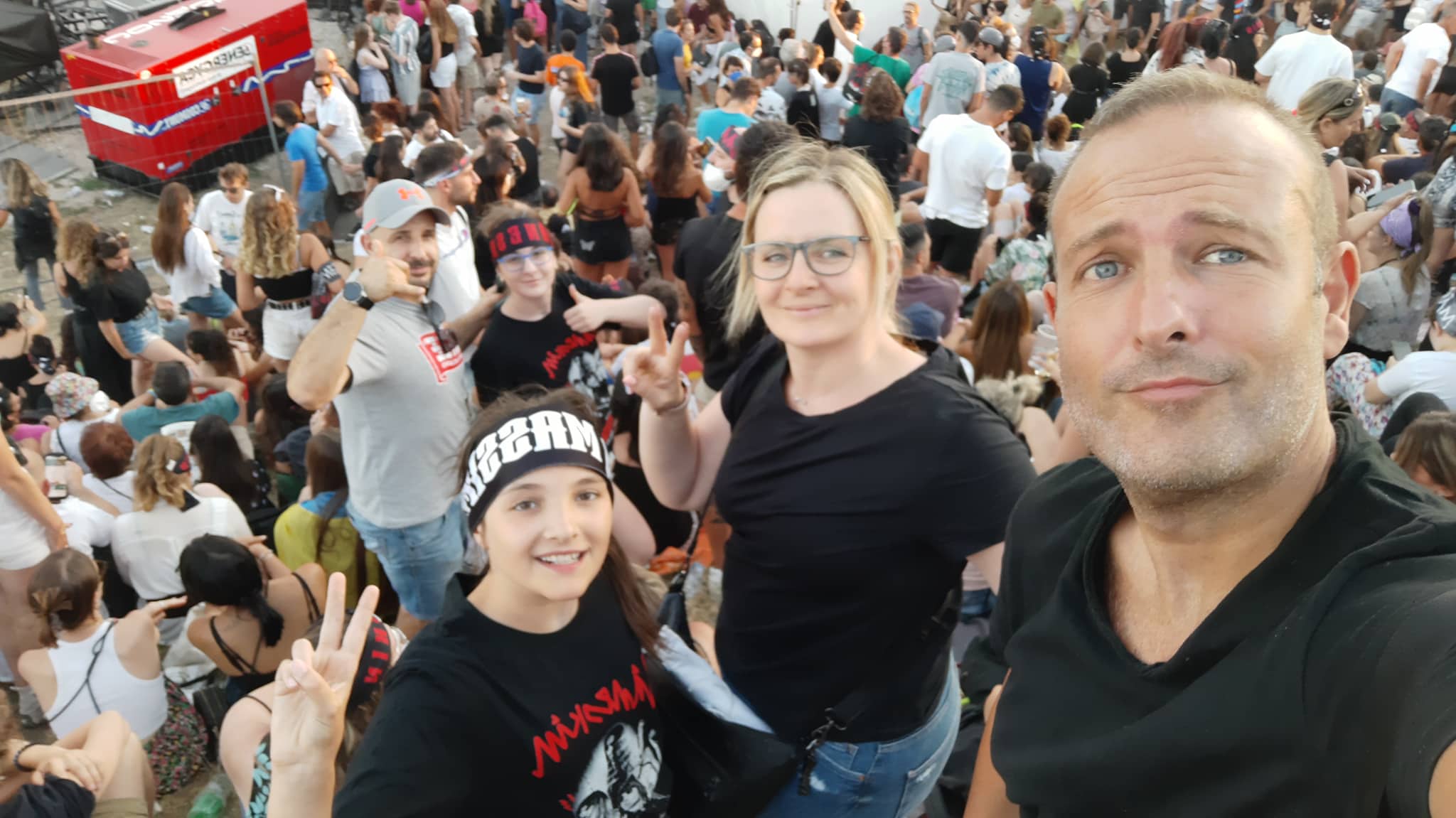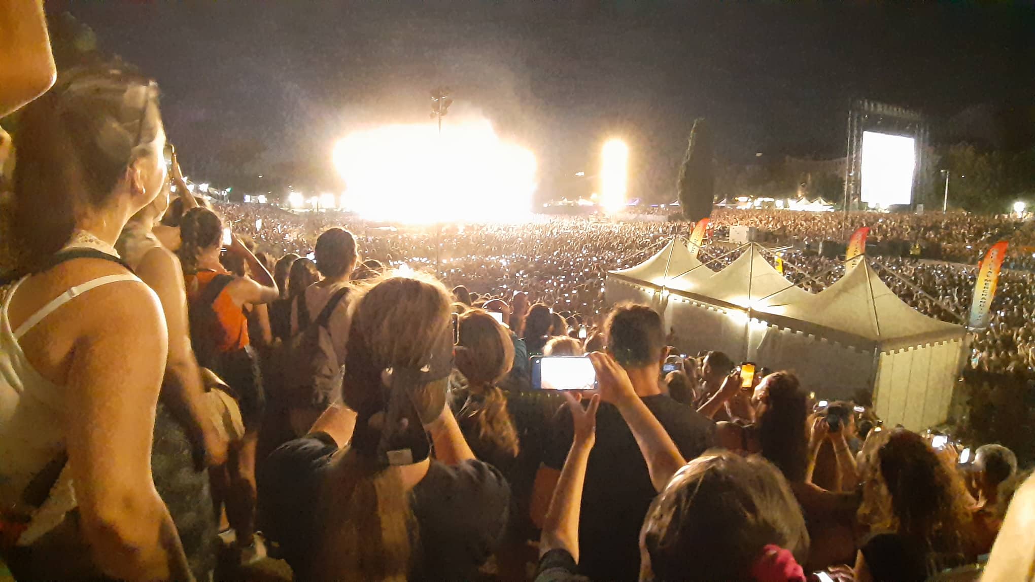 Il saluto di Damiano viene accompagnato da lingue di fuoco che si alzano verso il cielo, uno dei tanti effetti scenici scelti dal gruppo. A guardarli e a cantare le loro canzoni giovani di tutte le età. Bambini con i genitori, adolescenti, ma anche ragazzi di 60 e più anni, conquistati da rock della band romana.
