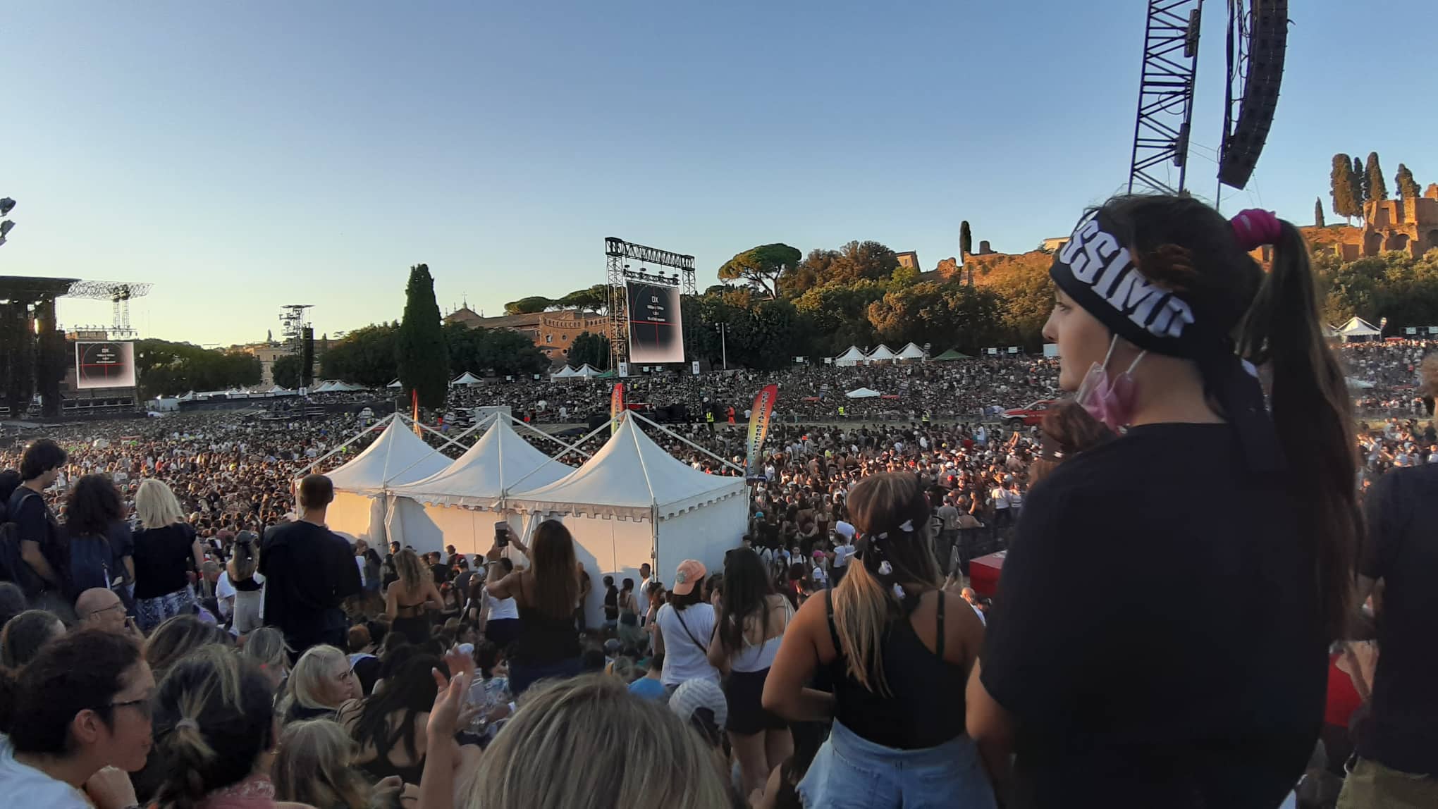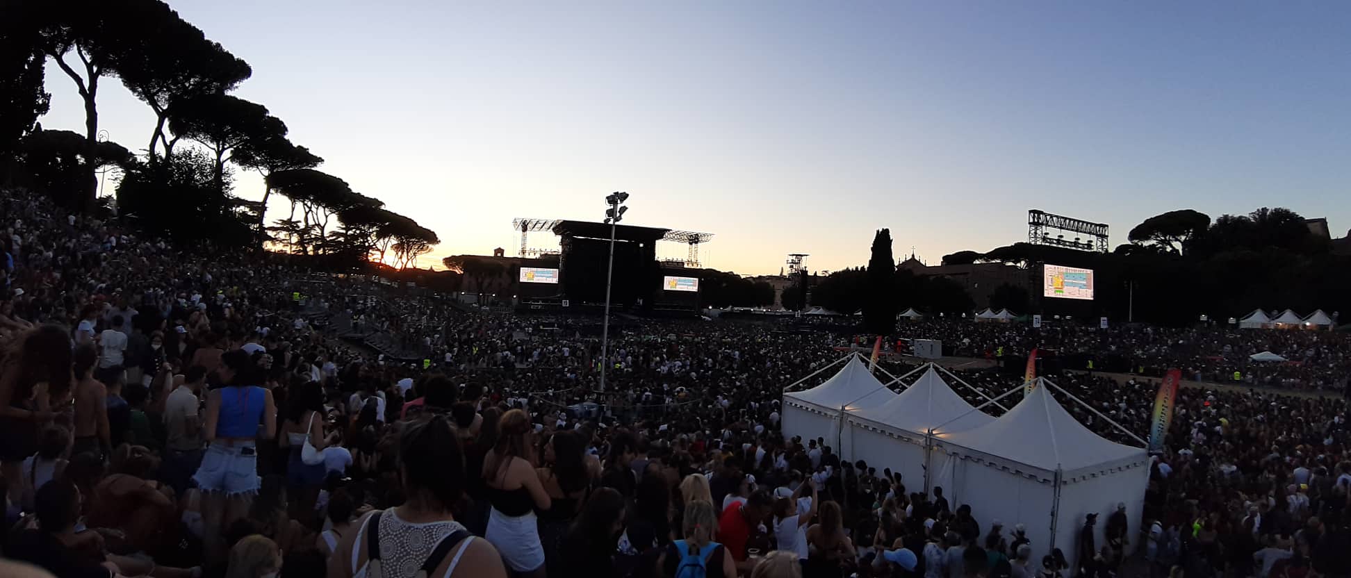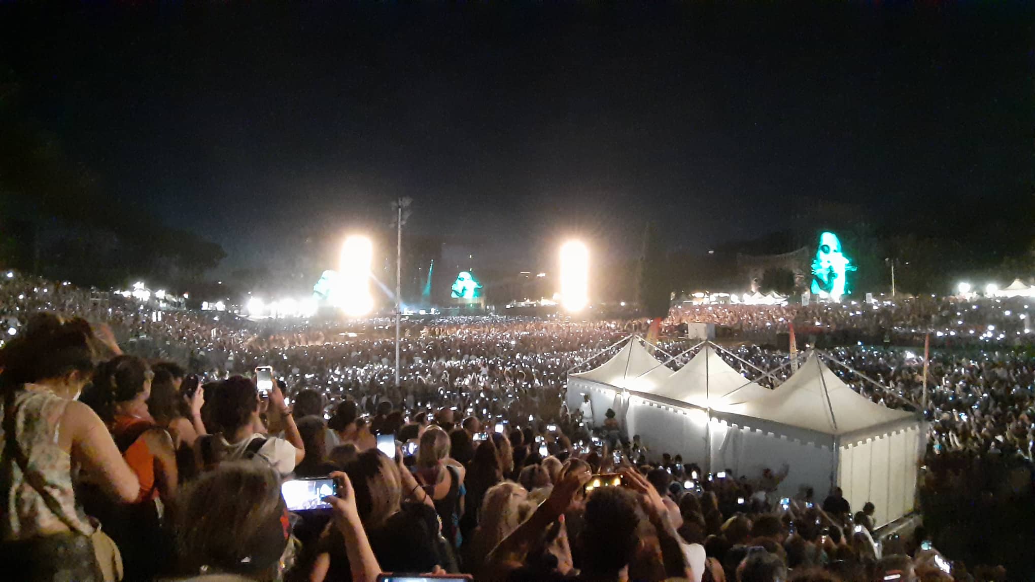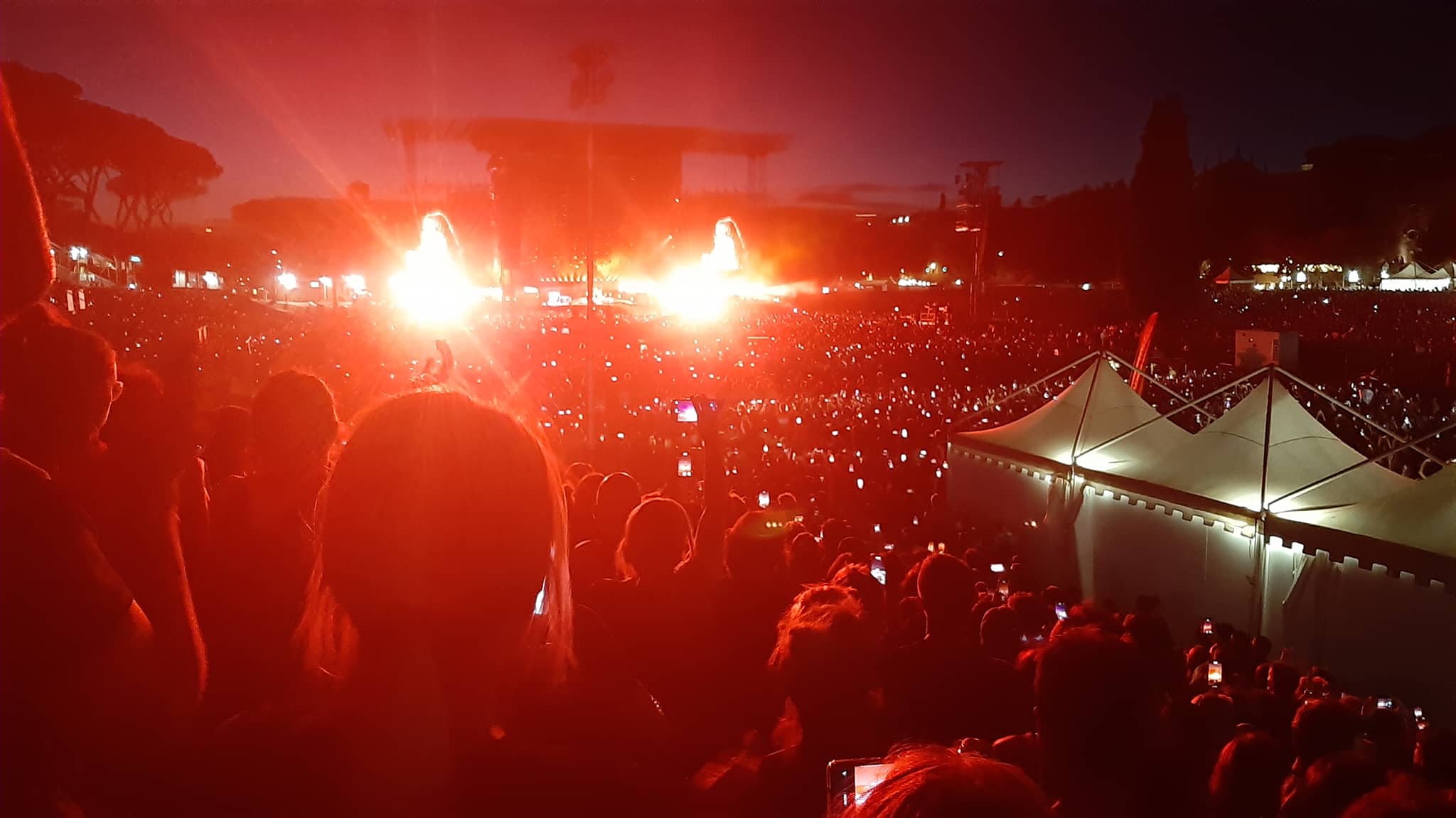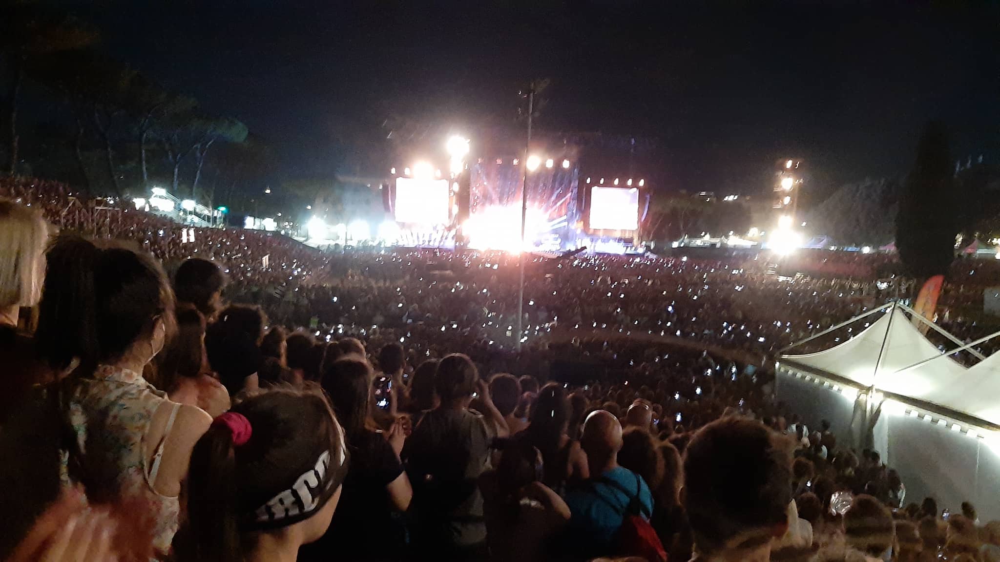 “Ciao Roma!”, è stato il grido iniziale di Damiano per scaldare il pubblico, già surriscaldato dalle alte temperature e dalla lunga attesa. Ma il clima è gioioso. I cellulari si illuminano per riprendere la scena. E che scena. I quattro ragazzi di Monteverde sanno come incantare il pubblico, sia con il loro repertorio che con la scenografia, davvero spettacolare.