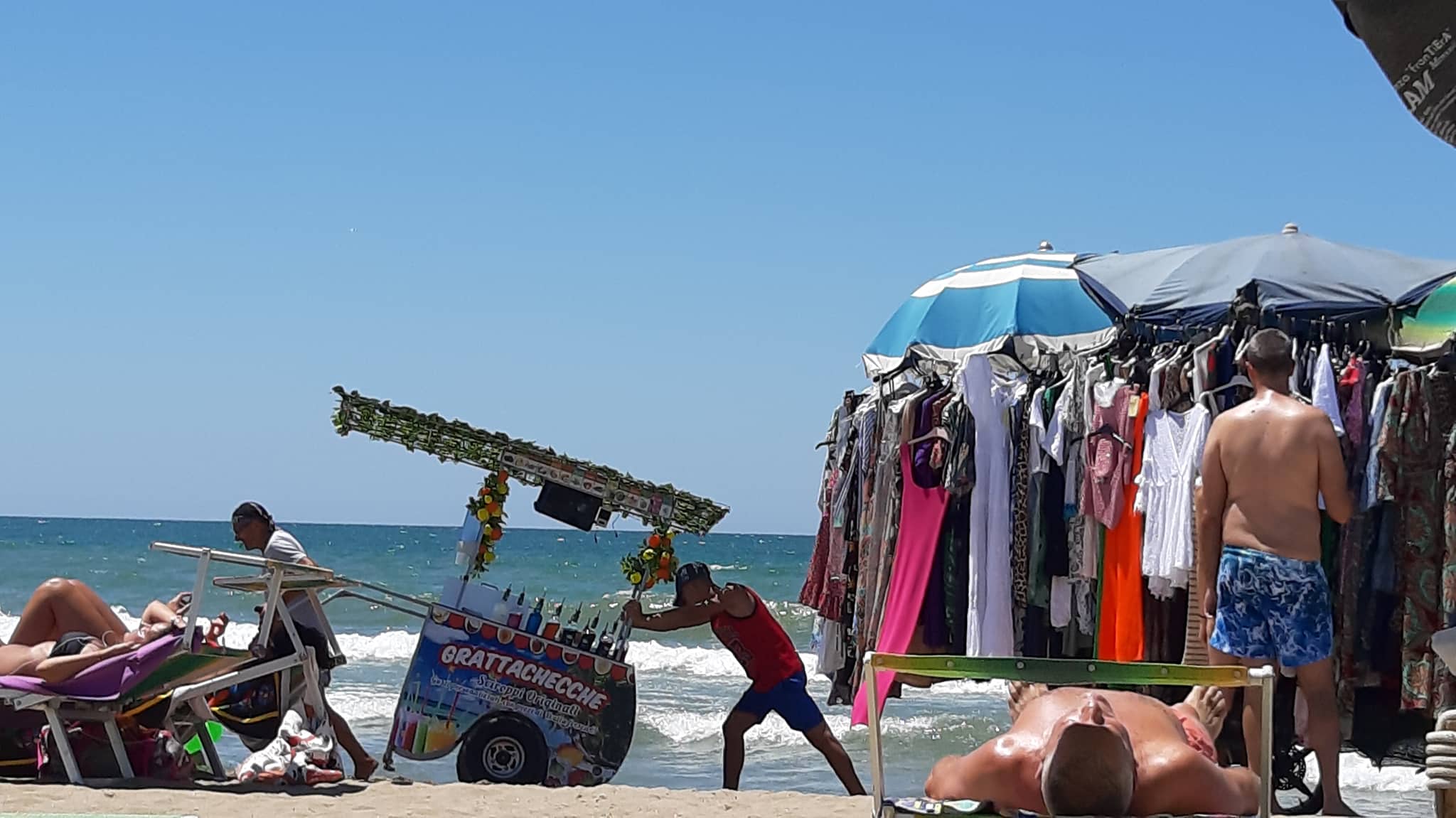 Un mercato abusivo che ha invaso tutti gli arenili, e che negli anni si è trasformato. Se prima c’era il classico venditore di coccobello e/o lo straniero di turno con il mega-carretto a rotelle stracarichi di abiti, passeggiando da Nettuno a Civitavecchia, passando per Torvaianica e Ostia, ora è possibile trovare di tutto. Dalle custodie per il cellullare, carica batterie, apparecchi elettronici di ultima generazione, grattachecche, telline appena pescate, fino al pesce fresco cucinato in riva al mare. Un via vai senza sosta di stranieri, ma non solo, che fanno su e giù tra lettini, sdraio e ombrelloni, incuranti di ogni regola igenico-sanitaria. Tutti rigorosamente senza controlli di qualità e provenienza del cibo venduto.
