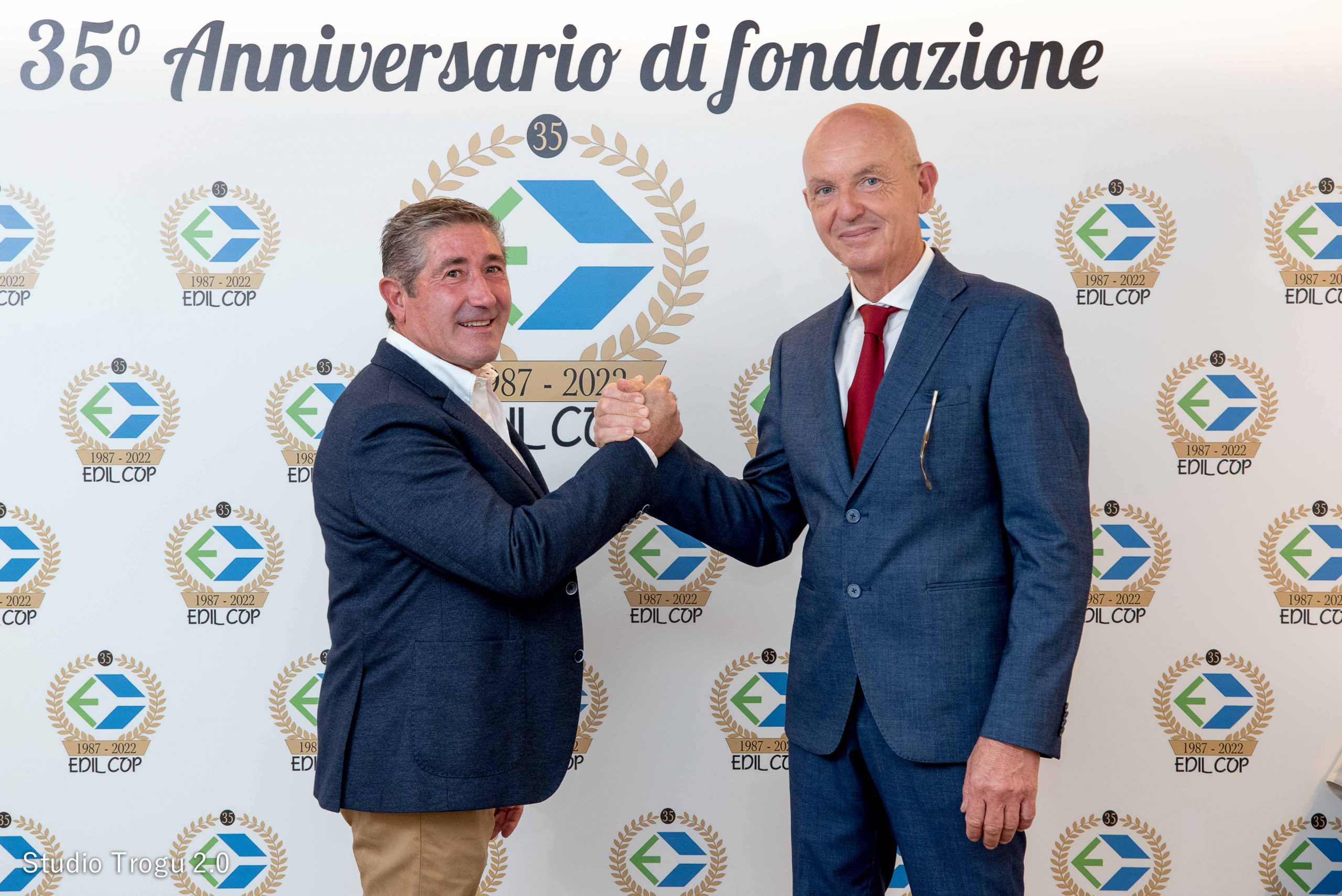 Nel corso della serata si sono alternati al microfono volti del passato e del presente, dal primo direttore di banca con cui l’azienda ebbe a che fare, Piero Brini, fino all’omologo attuale Elena Mariotti, per passare poi ad Angelo Alfani, all’Architetto Antonio Piccioni e Mauro Mercuri, quest’ultimo premiato con una targa per la fedeltà e gli anni trascorsi in casa Edil Cop.