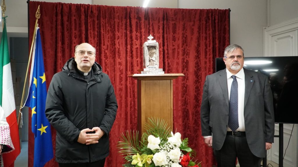 Roma 20 gennaio 2023 – Presso la sede confederale dell’UGL, in via Nomentana 26, si è tenuta la cerimonia di ostensione della reliquia del giudice Rosario Livatino, primo magistrato beato nella storia della Chiesa, ucciso per mano della mafia il 21 settembre 1990 a Agrigento.