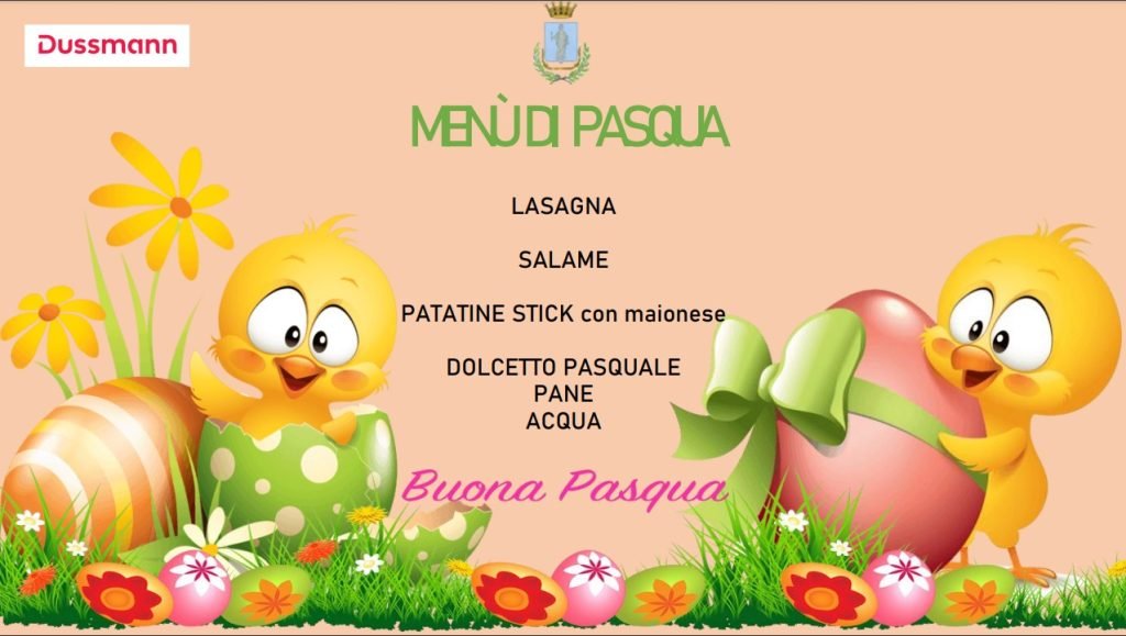 (MeridianaNotizie) Ariccia, 4 aprile 2023 – È ormai diventata una tradizione della Dussmann Service S.r.l., la ditta che fornisce il servizio mensa nelle scuole comunali di Ariccia, realizzare dei Menù a tema per le festività. Anche per la Pasqua, quindi, mercoledì 5 aprile, ai bambini dell’I.C. Volterra sarà proposto un Menù diverso dal solito che prevede Lasagne, salame, patatine stick con maionese e dolcetto pasquale.