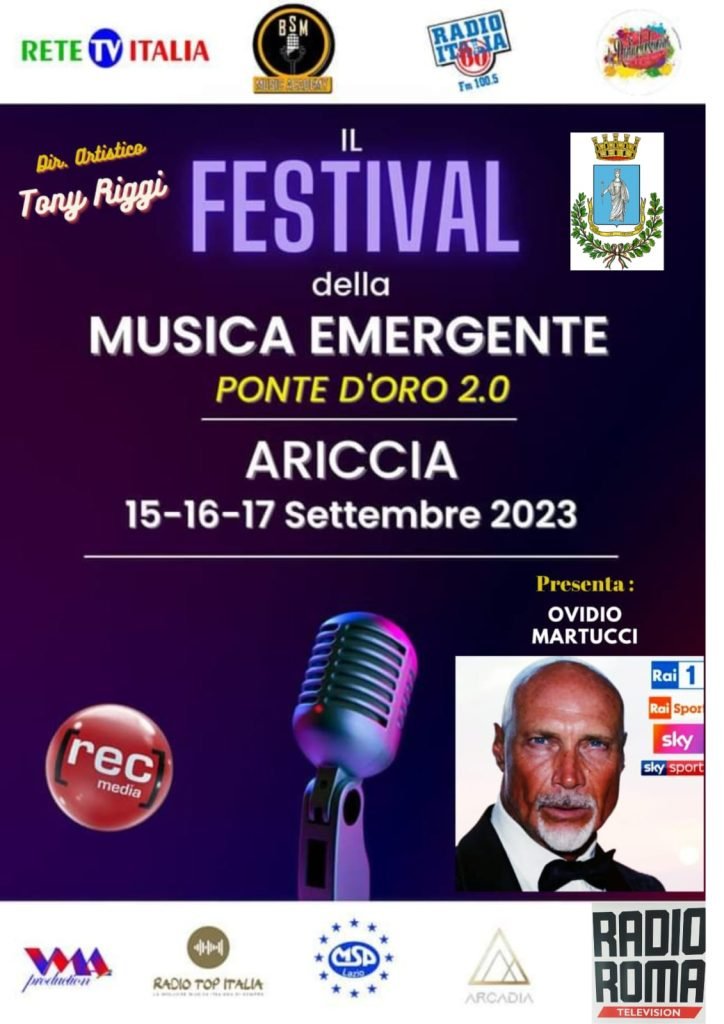 (MeridianaNotizie) Ariccia, 23 agosto 2023 –  Il 6 settembre 2023 alle ore 11.30 presso la Sala Maestra di Palazzo Chigi si svolgerà la Conferenza Stampa di Presentazione del FESTIVAL MUSICA EMERGENTE ” PONTE D’ORO 2.0 ” Città di Ariccia 2023 che si terrà nella cittadina dei Castelli Romani dal 15 al 17 settembre.