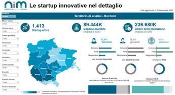 Nim, (Numbers Innovation Motion), un progetto di Galileo Visionary District realizzato in collaborazione con InfoCamere, la società delle Camere di commercio per l’innovazione digitale, con il contributo della Camera di commercio di Padova. Nim permette di trasformare i dati del più̀ importante database aziendale ufficiale del Paese (il Registro delle Imprese) in informazioni fruibili con infografiche, commenti, analisi e report, grazie ad una piattaforma web-based liberamente consultabile da cittadini, imprese, Pubbliche amministrazioni e dai media. Un progetto che ha coinvolto, e coinvolgerà in futuro, imprese e Pubbliche amministrazioni, Università, startup specialist ed esponenti del mondo Venture Capital in un dialogo continuo sul presente e soprattutto sul futuro delle nostre imprese innovative. Il quadro che emerge dal primo Report Nim sul settore delle startup del Triveneto racconta di un’area del Paese vitale e innovativa. Non mancano tuttavia alcuni elementi di criticità a conferma che lo sviluppo di nuova impresa innovativa, vera linfa vitale del futuro economico di un territorio, necessita di supporto costante, attenzione e capacità di investimento. In termini assoluti, sono 1.413 le startup del Nord-Est attive al 30 settembre 2023 in calo di 100 unità rispetto dicembre 2022. Di tutte le startup attive nel Triveneto 903, il 63,9% del totale ha sede in Veneto. Queste complessivamente hanno registrato ricavi per oltre 156 mln di euro, circa i due terzi (66%) di tutte le startup del Triveneto (236,7 mln euro).