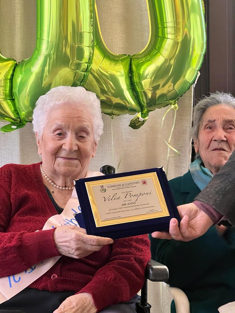 La signora Velia Pomponi, cittadina di Lanuvio, ha compiuto il 7 febbraio 100 anni.
