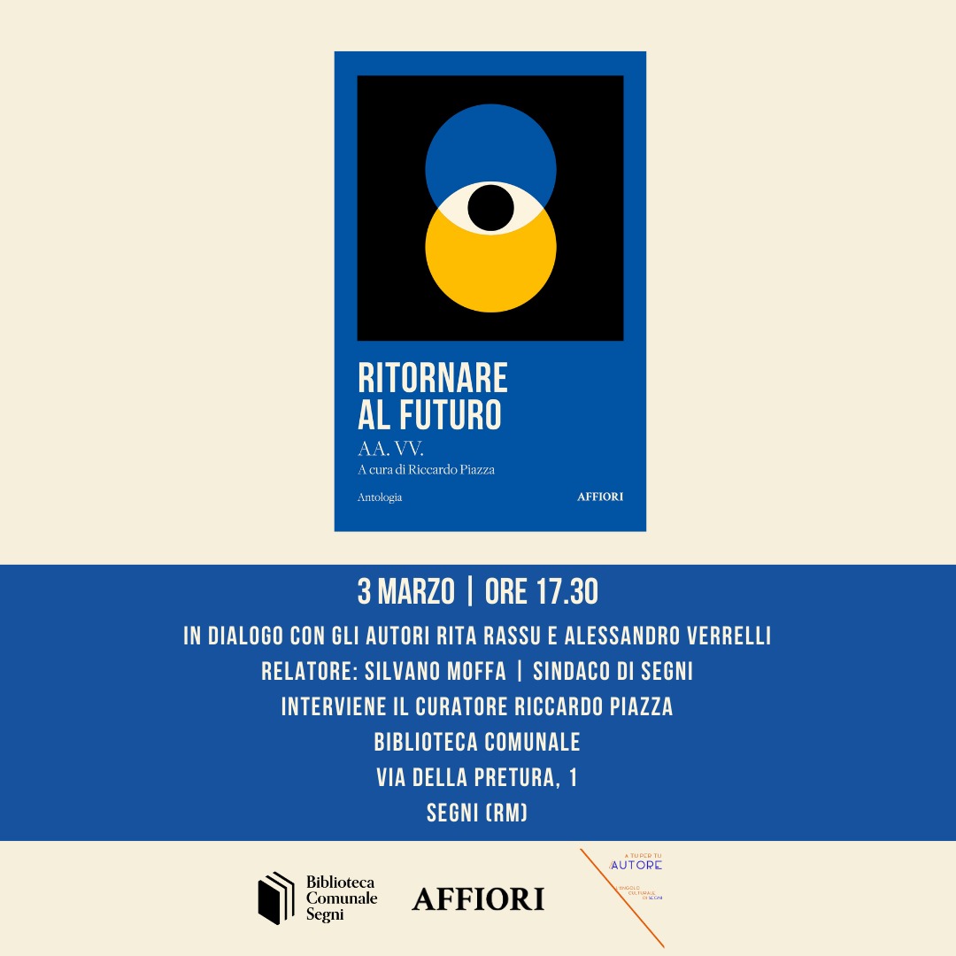 Edito dalla casa editrice Affiori, il racconto è contenuto nell’antologia “Ritorno al futuro”, a cura di Riccardo Piazza. All’evento parteciperà, oltre agli autori e al curatore, il sindaco di Segni Silvano Moffa.