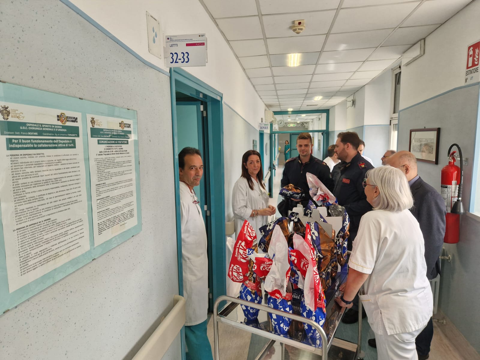 In ultimo, stamattina, gli agenti hanno fatto visita al reparto di chirurgia dell’Ospedale Santo Spirito, alla presenza del Commissario Straordinario ASL Roma 1 Giuseppe Quintavalle, che ha partecipato alla consegna dei doni ai pazienti, facendo loro gli auguri di Buona Pasqua e pronta guarigione.