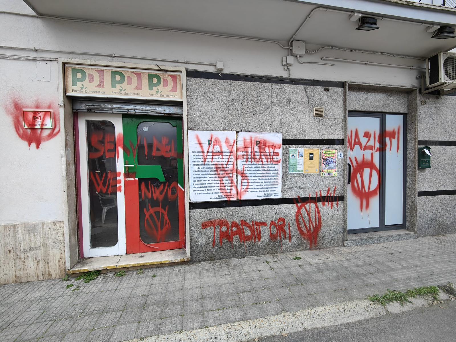 “Questa mattina ci siamo svegliati con la sede del Partito Democratico di Marino, situata a Santa Maria delle Mole, totalmente imbrattata. Siamo di fronte a un atto di una gravità inaudita, un fatto che giudichiamo intimidatorio, violento e che condanniamo senza “se” e senza “ma”. Peraltro, le parole con cui è stata imbrattato il nostro circolo risultano minatorie e ostili, e questa volta il danno è molto esteso, essendo state rovinate sia le porte di ingresso, il muro esterno e, sopratutto, la targa in ricordo del nostro Bruno Astorre. Nonostante tutto questo, non ci faremmo intimidire e continueremo con rinnovato slancio nella nostra azione a tutela di comunità e territorio. Al contempo, abbiamo inoltrato denuncia contro ignoti e attendiamo con fiducia che sia fatta chiarezza sull’accaduto e siano trovati gli autori di questo vile gesto da parte dalle autorità competenti ”.