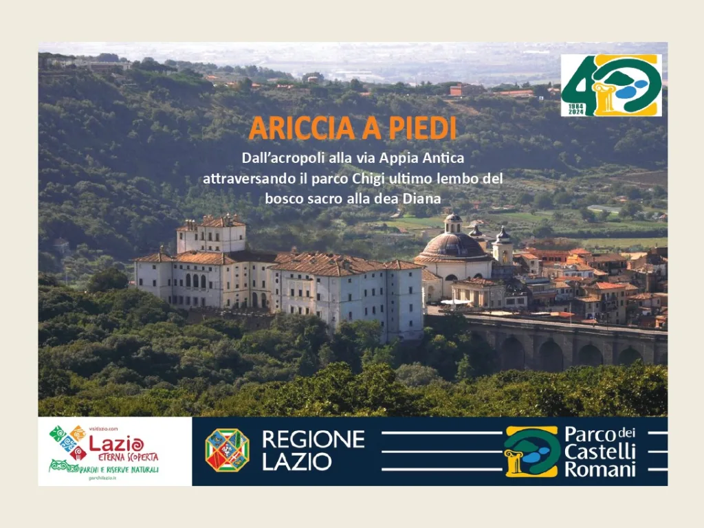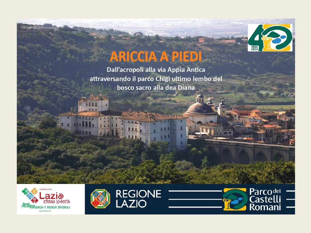 Il secondo contributo “Ariccia a piedi” (edita dal Parco Regionale dei Castelli Romani in occasione del Quarantennale dell’ente) è una guida a cura di Maria Cristina Vincenti che propone un itinerario di trekking ad anello dedicato ad Ariccia, includendo tutti i beni culturali e archeologici della nota cittadina, con informazioni riguardanti il dislivello, la percorrenza, l’accessibilità, le vie di fuga, la cartografia storica e quella attuale. La Vincenti, professionista nel campo archeologico, dottore di ricerca dell’Università di Roma Tor Vergata e guida Aigae, ha realizzato una sintesi efficace sulla sua città raccontandone la storia antica; le peculiarità naturalistiche come quelle del Parco Chigi, antico bosco sacro alla dea Diana e unico frammento superstite della selva latina (nemus Aricinum); i beni culturali eccellenti come il Palazzo Chigi, la Chiesa di S. Maria Assunta e la Locanda Martorelli che affacciano sulla berniniana Piazza di Corte. Una cospicua parte è dedicata al tratto aricino della Via Appia Antica con delle schede che illustrano le numerose vestigia che si conservano nelle aree archeologiche sulle quali spiccano la monumentale “Sostruzione” e il percorso sotterraneo dell’emissario del lago di Nemi. Non poteva mancare una rassegna sulle specie vegetali ed animali presenti nel territorio (tra cui due specie protette come il rospo smeraldino e la salamandrina dagli occhiali). L’itinerario sarà proposto domenica 12 maggio mattina nell’ambito dell’escursione guidata “Ariccia a piedi” promossa dalParco Regionale dei Castelli Romani.