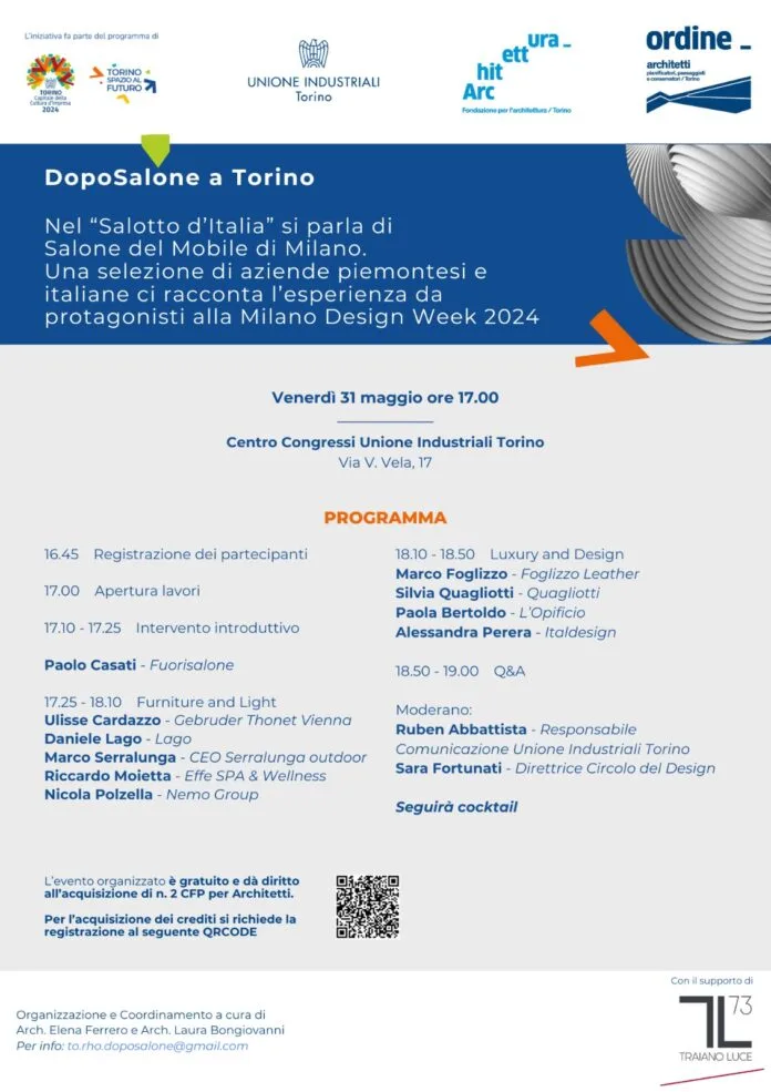 La Milano design week si trasferisce a torino per un giorno. Il centro congressi dell’Unione Industriali venerdì 31 maggio dalle 17 ospiterà una selezione di aziende piemontesi che hanno partecipato alla kermesse lombarda e racconteranno la loro esperienza. L’iniziativa è inclusa nel programma di ‘Torino capitale della cultura di impresa’ ed è svolta in collaborazione con l’Ordine degli architetti.