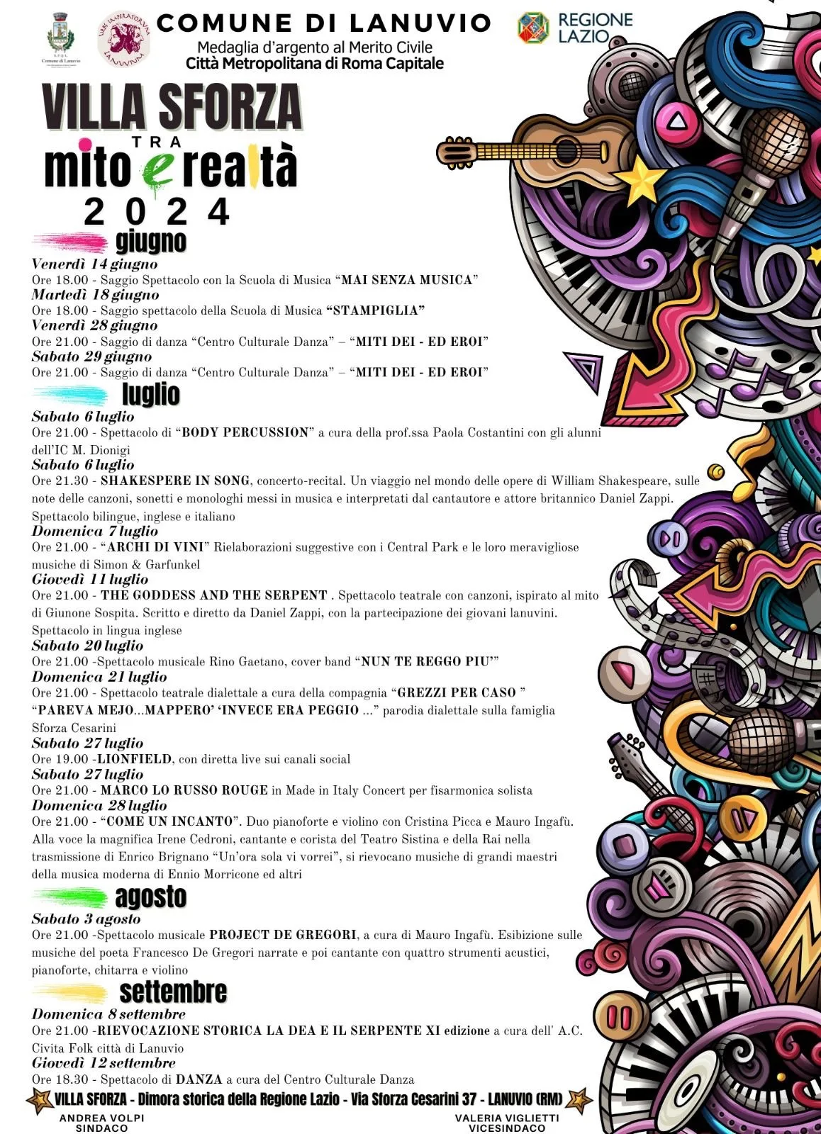 Prenderà il via domani, venerdì 14 giugno, alle ore 18, la manifestazione culturale “Villa Sforza tra mito e realtà”, che sarà ospitata all’interno della Villa lanuvina che ospita i resti del tempio di Giunone Sospita.