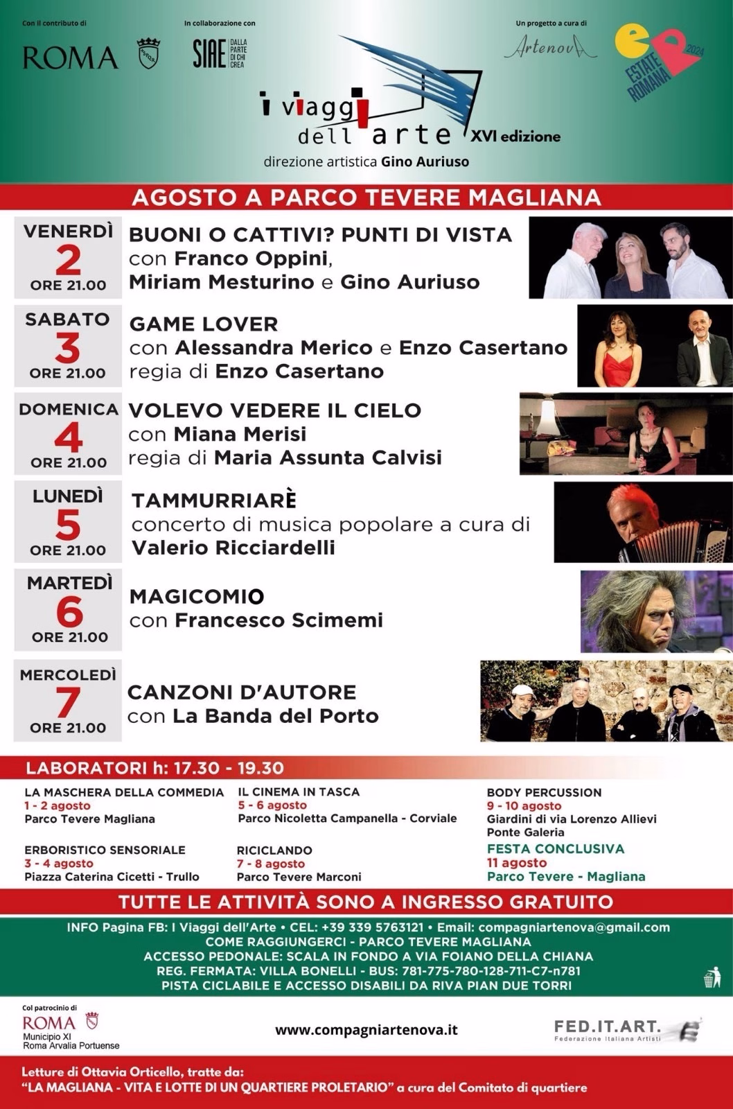 Oasi creative aperte a tutti dove coltivare, tra divertimento e riflessione, il piacere di ritrovarsi in questa splendida Estate Romana insieme ad alcune eccellenze dello Spettacolo Italiano.