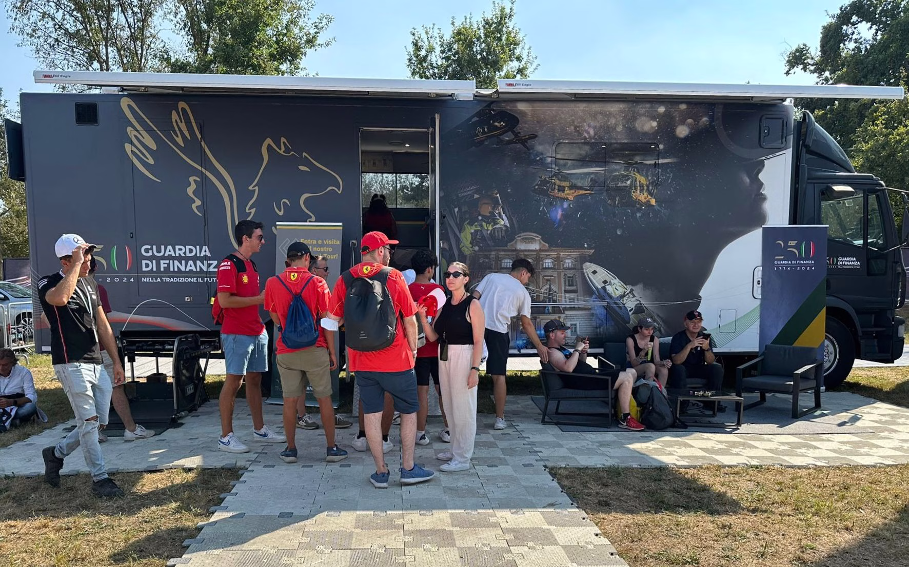 Per la manifestazione il Comitato eventi sportivi, insieme al personale del Quartier Generale, ha allestito nella Fan Zone dell’Autodromo Nazionale di Monza uno stand del Corpo, in cui si trova il VE.I.CO.LO. itinerante delle Fiamme Gialle, già presente in tutte le manifestazioni sportive, volto a offrire ai cittadini la possibilità di immergersi nella realtà virtuale. Infatti, al suo interno i visitatori hanno a disposizione quattro postazioni multimediali, dotate di visori di ultima generazione, per simulare situazioni di attività operativa.