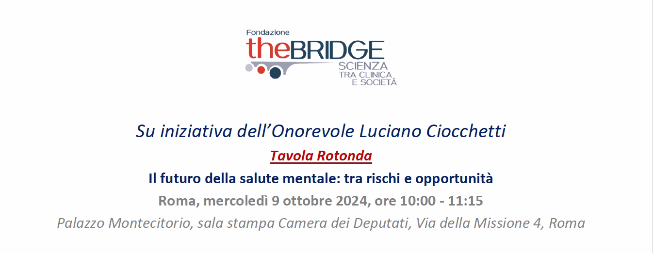 L’evento, promosso da Fondazione The Bridge in occasione della Giornata mondiale della salute mentale, che si celebra il 10 ottobre, è un momento di riflessione e dibattito sullo stato attuale e sulle prospettive future della salute mentale, con particolare attenzione alle sfide e alle opportunità che emergono in un contesto sempre più tecnologico e globalizzato. L’obiettivo è creare un dialogo costruttivo tra professionisti, istituzioni e società civile.