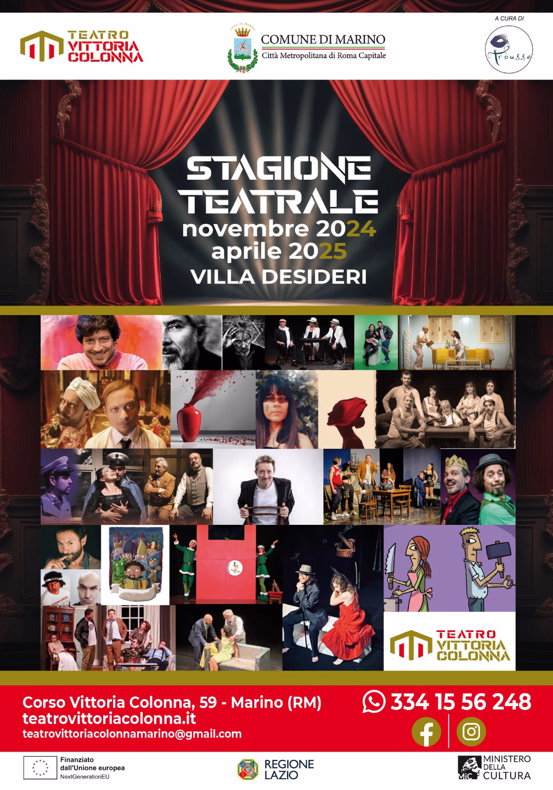 Venerdì 8 novembre 2024 alle ore 18.00 verrà inaugurato a Marino (RM) il nuovo Teatro Comunale “VITTORIA COLONNA” presso Villa Desideri intitolato alla omonima nobile poetessa nata a Marino nel 1492, donna culturalmente affascinante a cui si legarono nomi importanti del Rinascimento come Michelangelo Buonarroti, Ludovico Ariosto, Jacopo Sannazzaro e molti altri.
