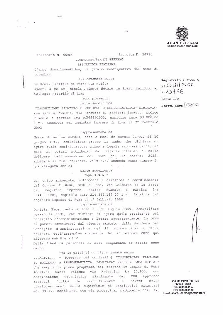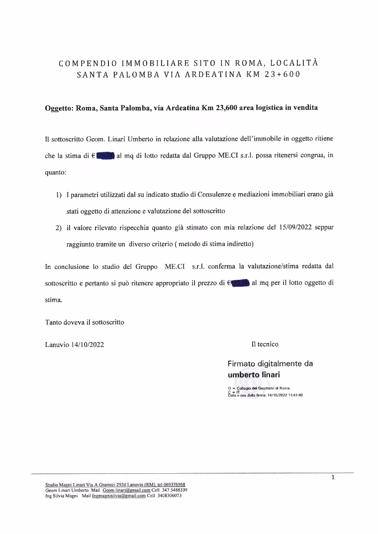 Nel 2022, Ama, la società partecipata del Comune di Roma, ha incaricato Linari di stimare il valore di un terreno a Roma-Santa Palomba, destinato a ospitare un moderno inceneritore con una capacità di 600mila tonnellate di rifiuti annui. Questo terreno, situato accanto alla discarica di Albano gestita dal Gruppo Cerroni, è stato acquistato per 7,5 milioni di euro. Tuttavia, le perizie di Linari, decisive per l’operazione, non sono state asseverate, cioè non hanno ricevuto certificazione in tribunale, sollevando dubbi sulla loro affidabilità.