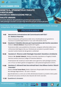 Di questo ma anche di altro se ne parlerà il 14 dicembre nell’ambito di un convegno promosso e organizzato dall’Istituto Zooprofilattico Sperimentale del Lazio e della Toscana con il patrocinio, tra gli altri, dell’Ordine dei Biologi del Lazio e dell’Abruzzo (OBLA) e della Federazione Nazionale degli Ordini dei Biologi (FNOB). L’evento – che si terrà a Roma, nella “Sala Zavagli” dell’Istituto Mariano Aleandri (via Appia Nuova, 1411, 00178 Roma) – è dedicato alla piattaforma genetica per la prevenzione delle patologie vascolari ed al ruolo degli alimenti sani per un futuro più sano: