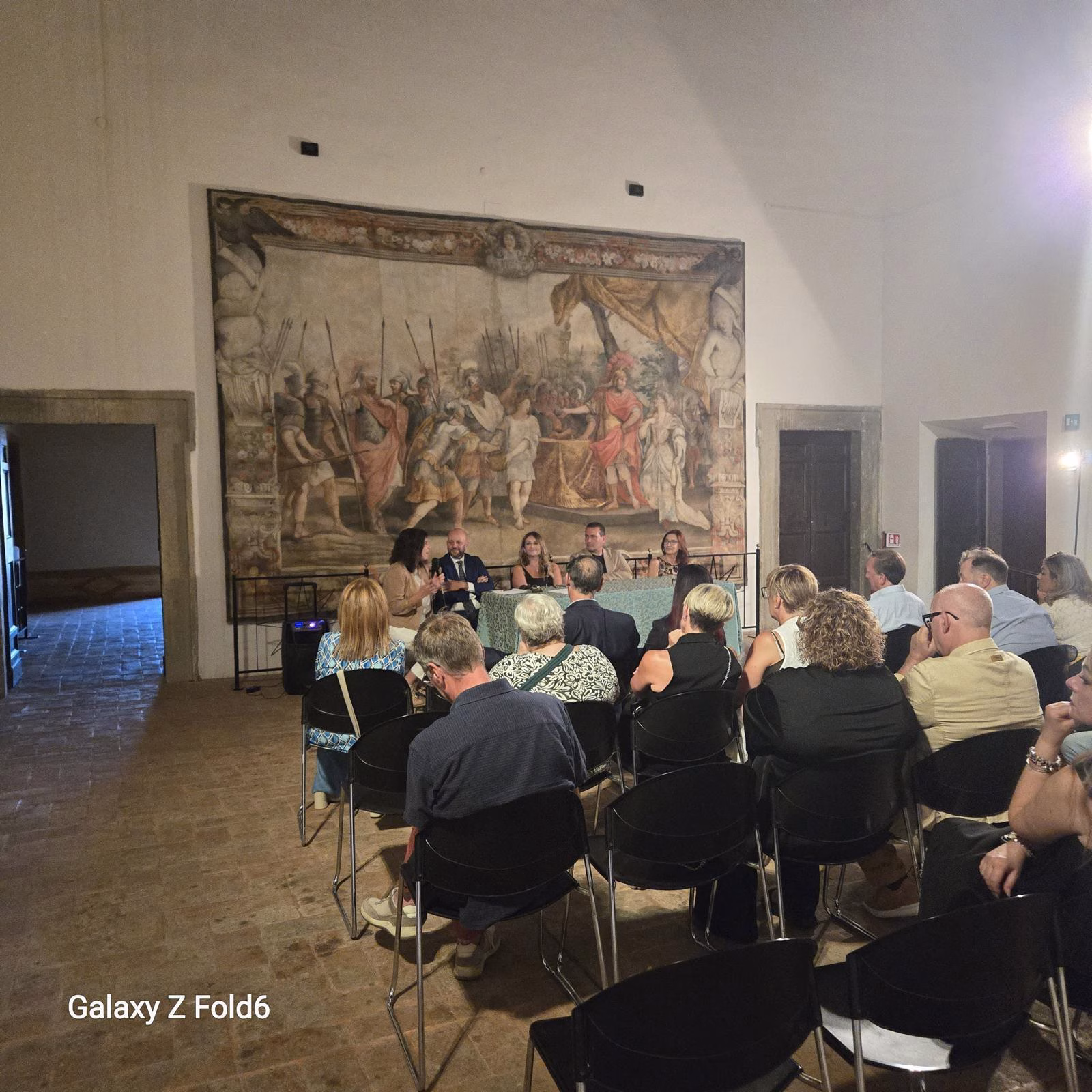 La conferenza stampa, ospitata nella prestigiosa cornice di Palazzo Chigi e moderata dal giornalista e Consigliere del Sistema Castelli Romani Massimiliano Tommasi, ha visto la presenza di autorevoli rappresentanti delle istituzioni: il Senatore Marco Silvestroni, le Consigliere regionali Micol Grasselli ed Edy Palazzi, il Presidente del Consiglio comunale Michele Filosofi, le Consigliere comunali Anita Luciano e Irene Falcone, il Sindaco Gianluca Staccoli e il Direttore Artistico Giacomo Zito.