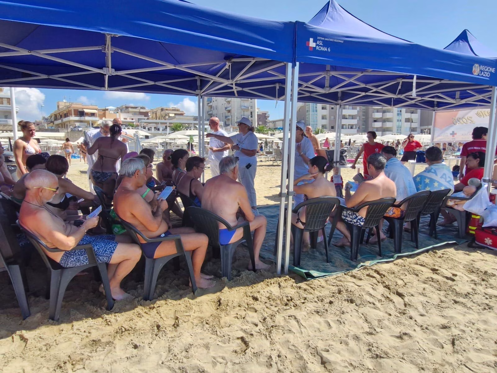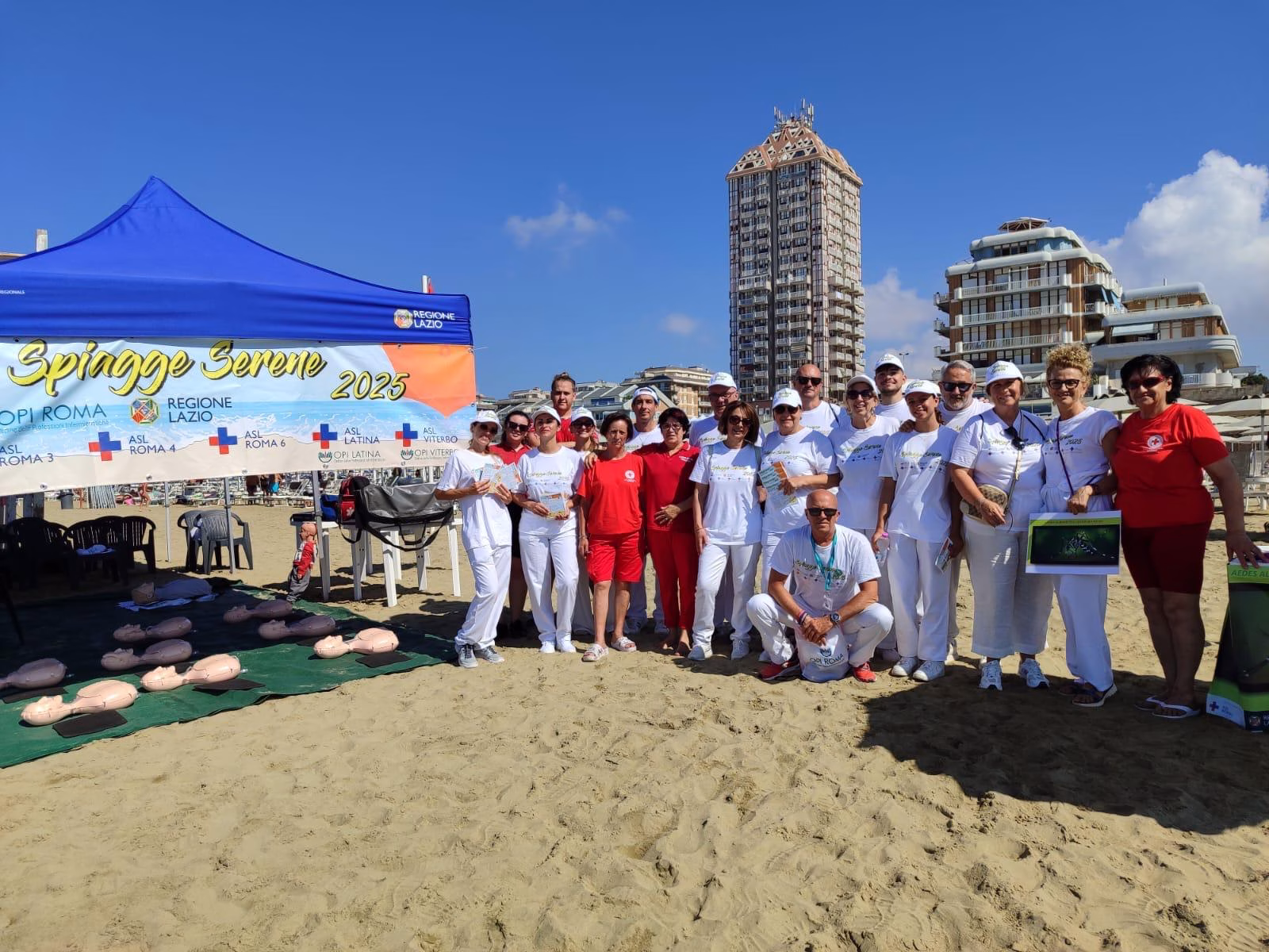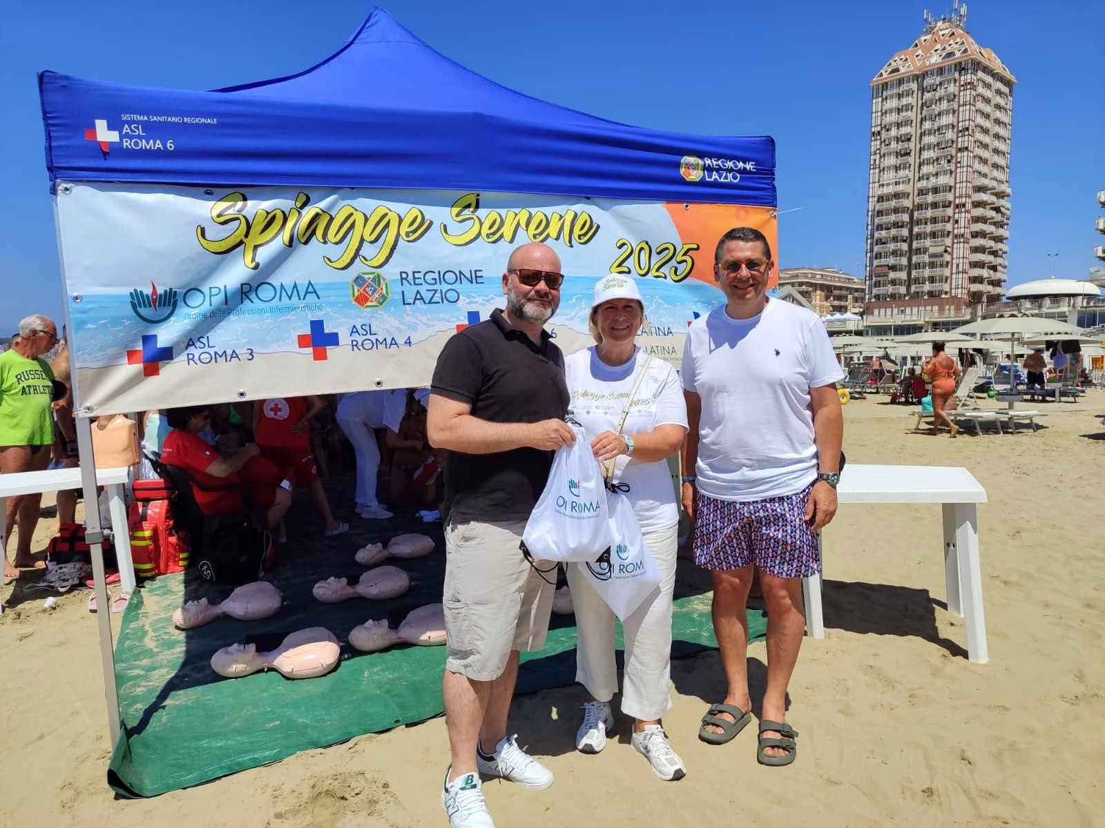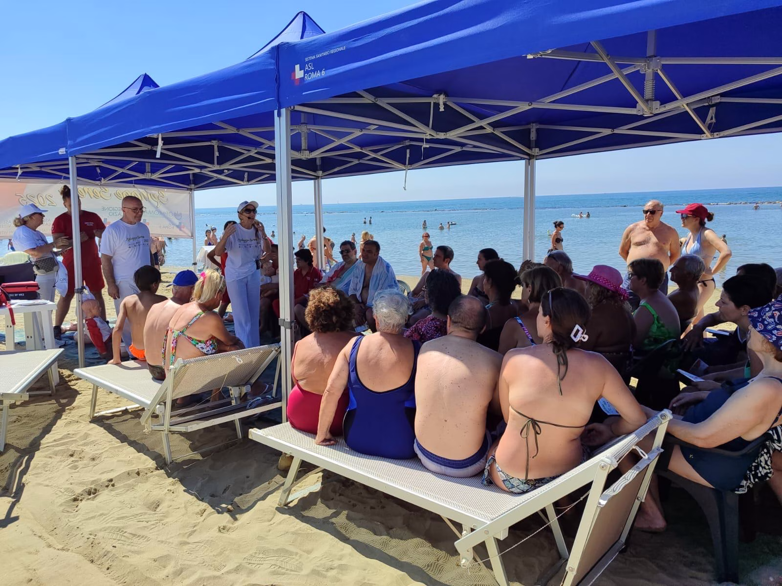 Nettuno, seconda tappa del tour 2025 di “Spiagge Serene” iniziativa per la sicurezza in spiaggia organizzata dalla Asl Roma 6. Questa mattina allo stabilimento “Bellavista” , presenti insieme agli infermieri e altre figure sanitarie anche il sindaco di Nettuno Nicola Burrini e il presidente regionale della Federsanità Lazio Manuel Magliocchetti. Il 4º anno della manifestazione che tocca tutti i comuni con spiagge e laghi dei Castelli Romani e del Litorale era iniziato domenica scorsa presso la spiaggia attrezzata per disabili di Anzio alla Riviera Mallozzi. Il progetto è coordinato dalla dottoressa Cinzia Sandroni dirigente della Asl Roma 6 del settore infermieristico, con la collaborazione di altri responsabili dei servizi territoriali.