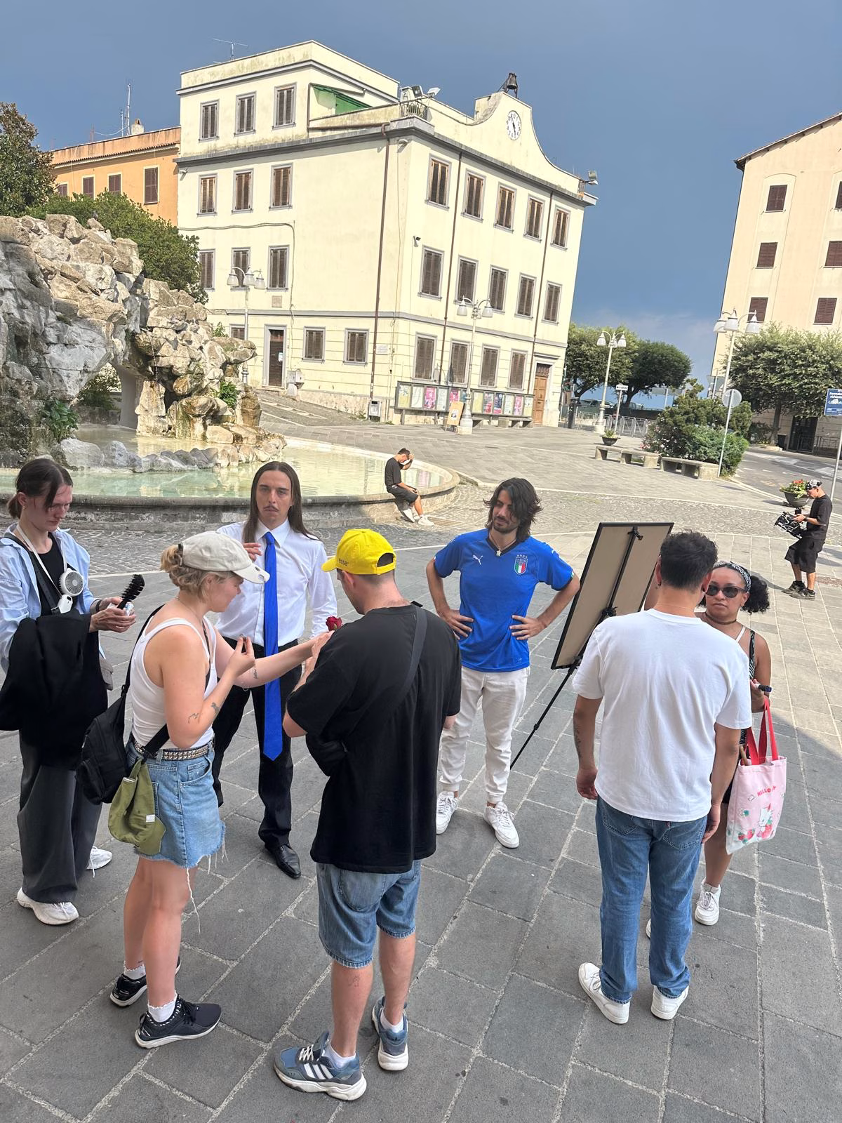 A fare gli onori di casa è stato il Consigliere comunale Maurizio Santoro, che ha accompagnato il numeroso team composto da artisti, tecnici e operatori video, offrendo il supporto istituzionale e l’accoglienza a nome dell’intera comunità.