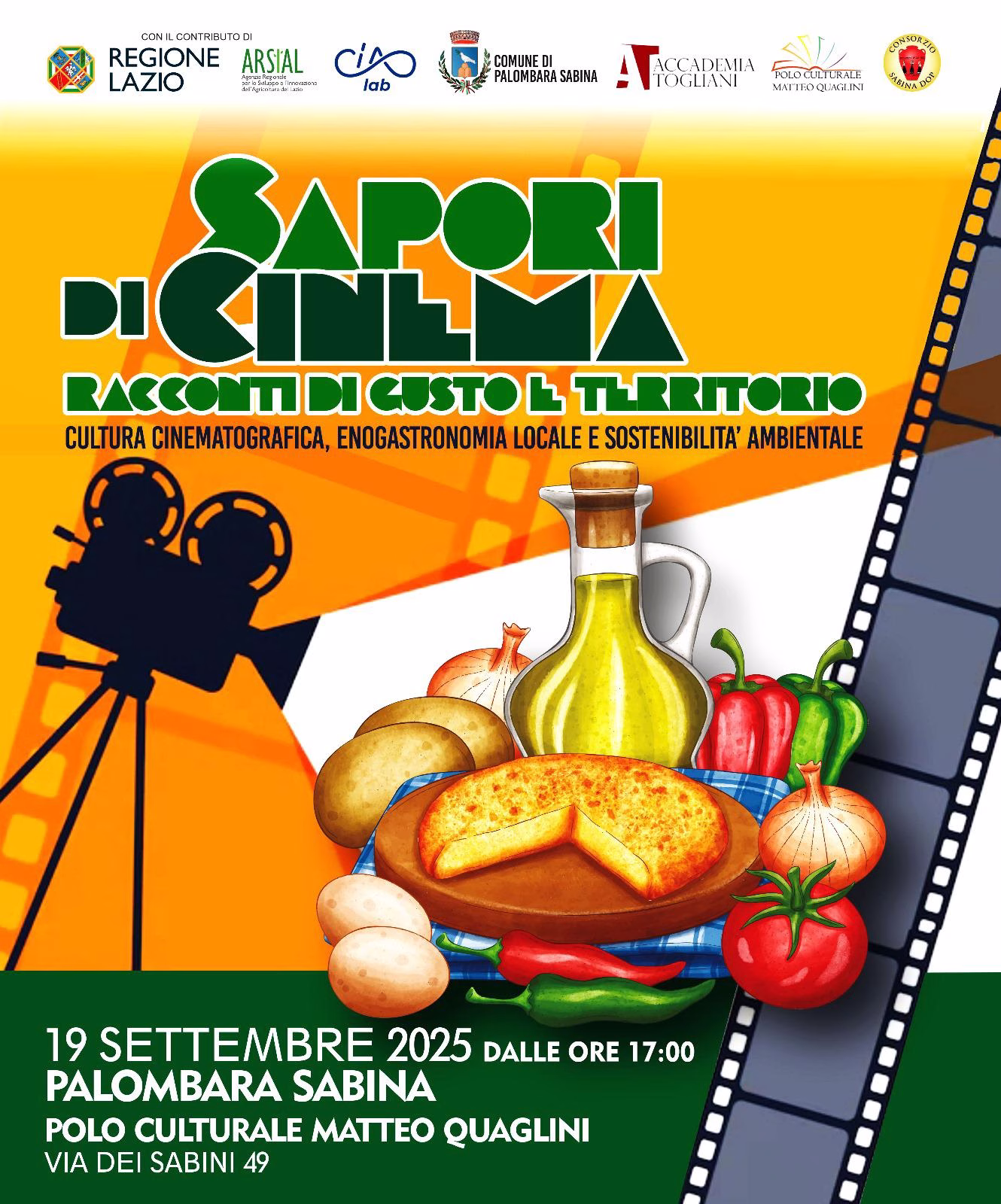 Il progetto “Sapori di Cinema: Racconti di Gusto e Territorio”, promosso dall’Associazione CiaoLab, realizzato con il contributo di Arsial e della Regione Lazio, con il patrocinio del Comune di Palombara Sabina e la collaborazione di, ha l’obiettivo di valorizzare le eccellenze del territorio sabino e promuovere riflessioni sul cibo, la sua origine, il suo consumo consapevole e il suo racconto attraverso le immagini: un’esperienza immersiva che intreccia arte visiva, tradizione e impegno sociale.