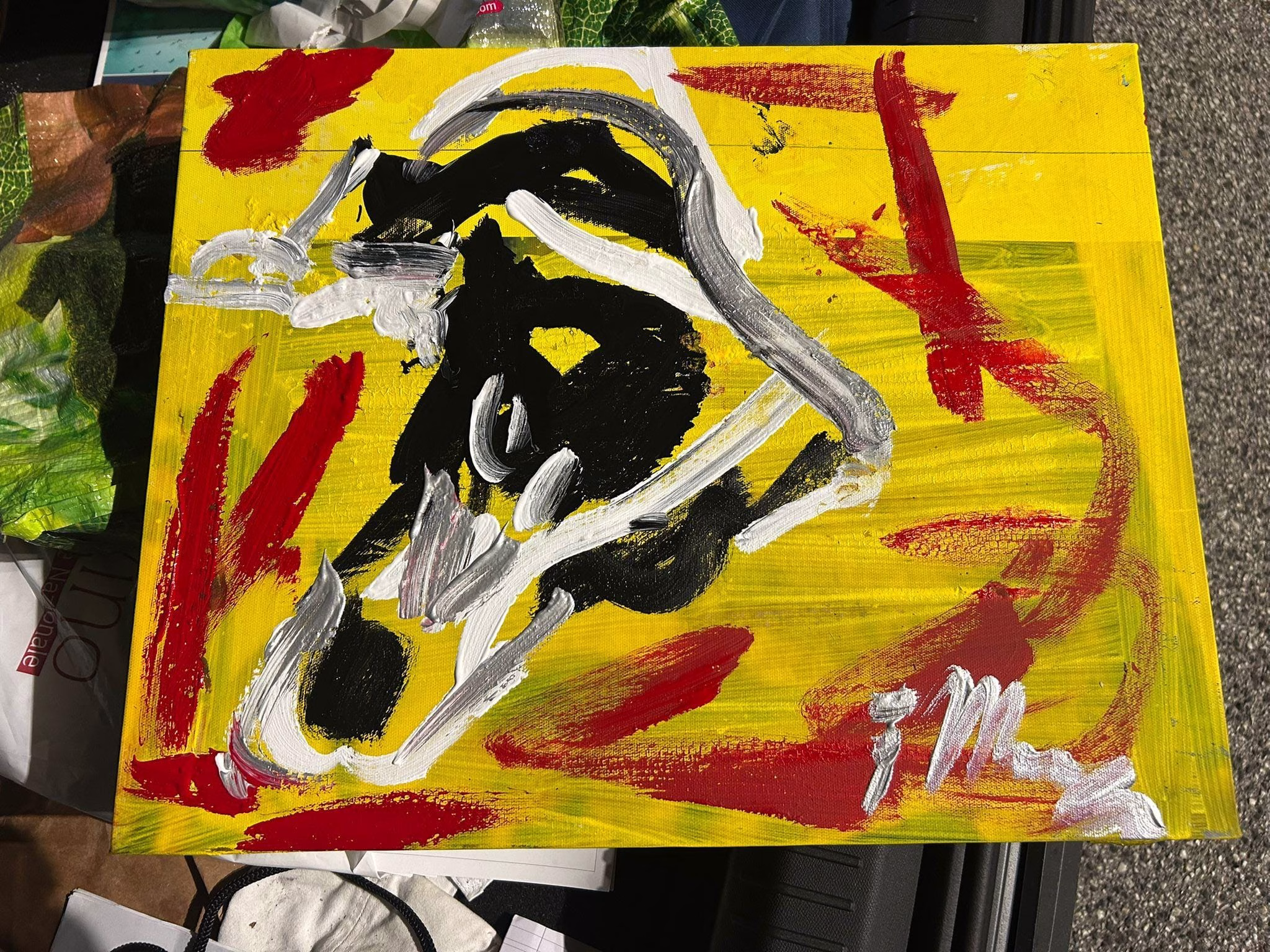 «Ogni quadro è una memoria, una sensazione, un’emozione radicata nei luoghi che amo» racconta il pittore. «Ho voluto rendere omaggio a Giunone Sospita e Dioniso, unendo mito, storia e arte contemporanea in un racconto visivo che coinvolge anche il pubblico. Sulla sinistra ho rappresentato la Dea con il serpente sacro, sullo sfondo il tempio e l’antefissa, e sulla destra Dioniso con un omaggio a Leonardo da Vinci.»