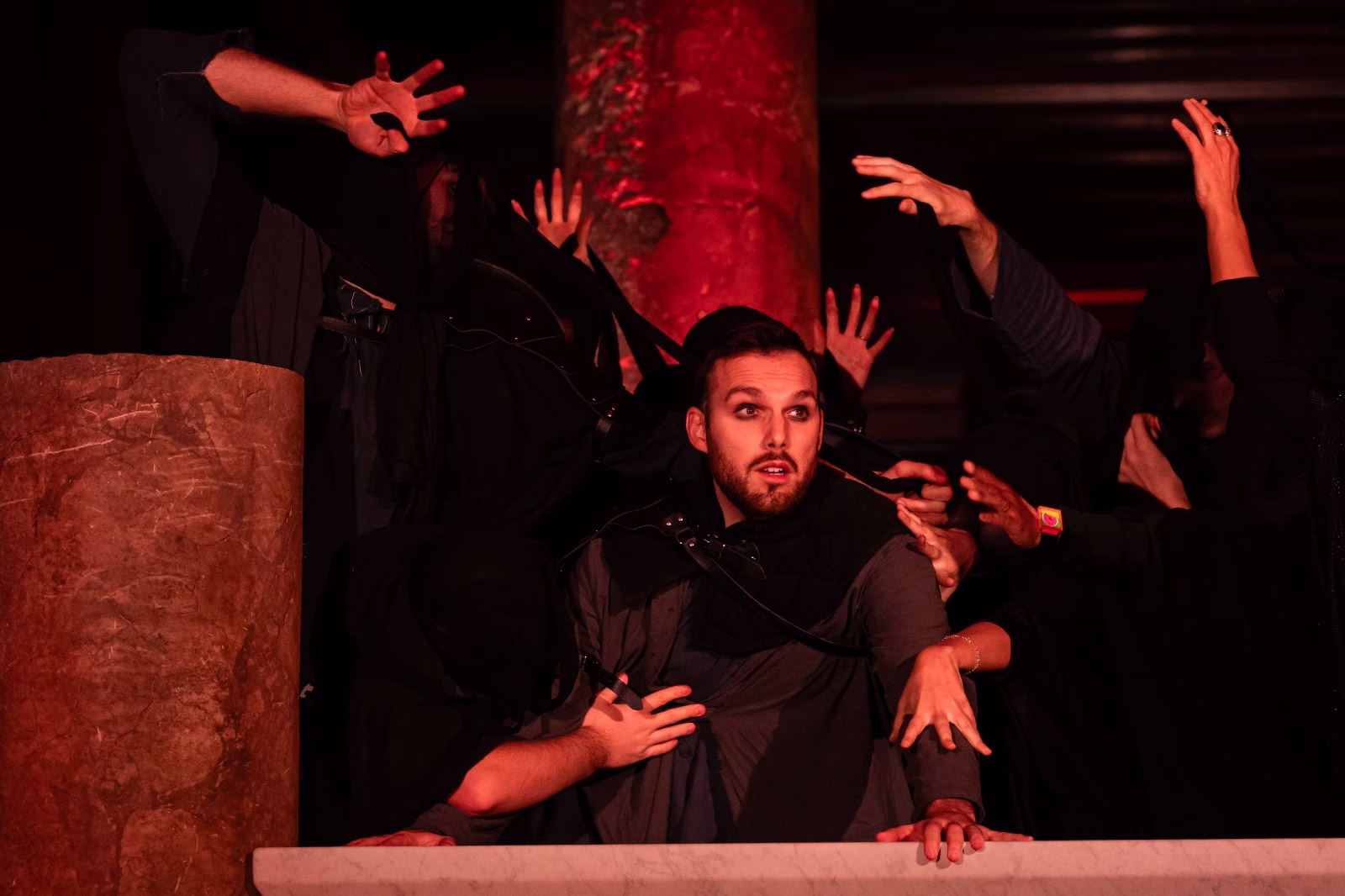 Gli allievi dell’Accademia Bernini (che meritano di essere citati uno per uno, in ordine alfabetico, per la loro bravura ineccepibile: Daniela Bellardinelli, Giorgio Belocchi, Gisella Bonsanti, Moira Buttu, Enrico Cametti, Giada Carbone, Alessio Cavallo, Gianmichele Cazzetta, Andrea Costantini, Stefania Evangelisti, Gabriele D’Anastasio, Andrea De Dominicis, Michela Delli Castelli, Leandro De Pasquale, Filippo Di Vita, Francesca Fattorini, Nadia Felci, Barbara Fiorentino, Alessandro Gemma, Lisa Manna, Simona Mercurio, Nicola Ottavi, Fosca Pallai, Mauro Piatti, Lara Sofo, Michela Zocchi) hanno – con generosità e rigore – affrontato un testo arduo, antico e vertiginoso, restituendolo con un’intensità scenica notevole. La loro presenza fisica ed emotiva tra le rovine ha reso viva la dicotomia tra destino e scelta, natura e civiltà. È in questa dialettica che la messinscena ha trovato il cuore pulsante, oscillando tra il sacro e il profano, come Eschilo insegna.
