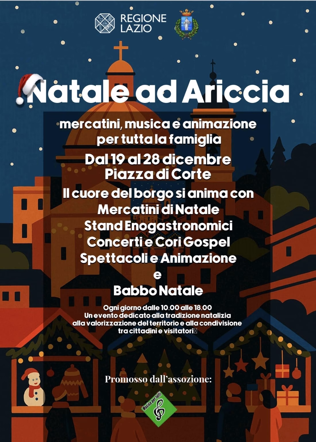 Regione Lazio e del Comune di Ariccia, intende valorizzare la tradizione natalizia e rafforzare il senso di comunità attraverso un’esperienza coinvolgente e autentica.