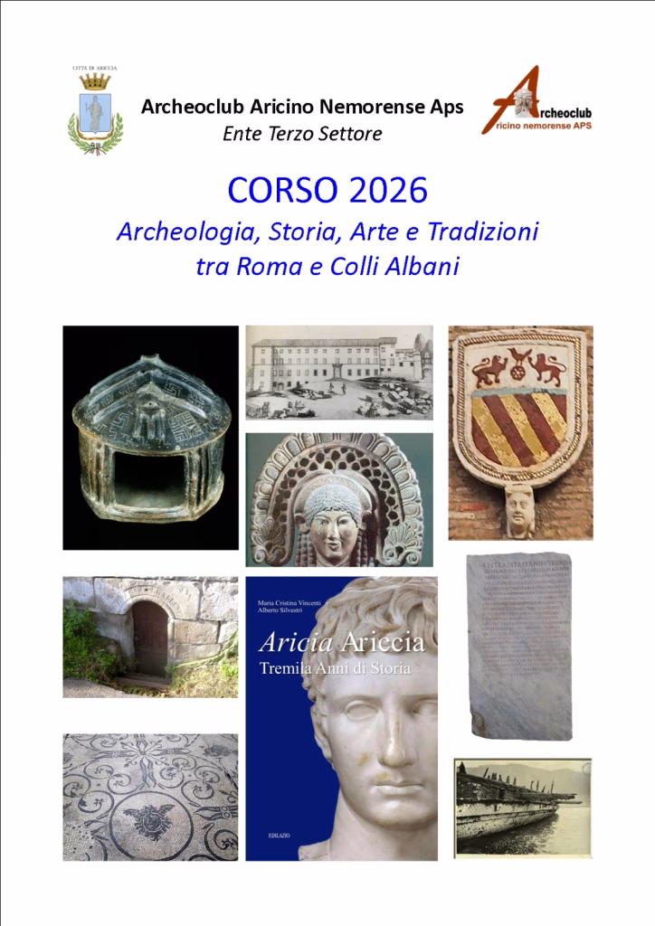 Dopo l’importante convegno che si è svolto nella splendida dimora barocca di Palazzo Chigi nell’ambito del Festival dell’Archeologia 2025 / Appia Day del 4 ottobre scorso, “La Via Appia antica Regina Viarum”, e della presentazione del volume edito da Edilazio “Aricia Ariccia tremila anni di storia” (a cura di A. Silvestri e M.C. Vincenti) presentato il 5 ottobre, l’Archeoclub Aricino Nemorense APS ha organizzato il Corso di Archeologia e Storia dell’Arte, che aprirà le lezioni, come di consueto, nel mese di febbraio 2026 ed è riservato ai soci. Vista l’importanza culturale del volume “Aricia Ariccia tremila anni di storia” il Comune ha contributo al 50% dei costi.