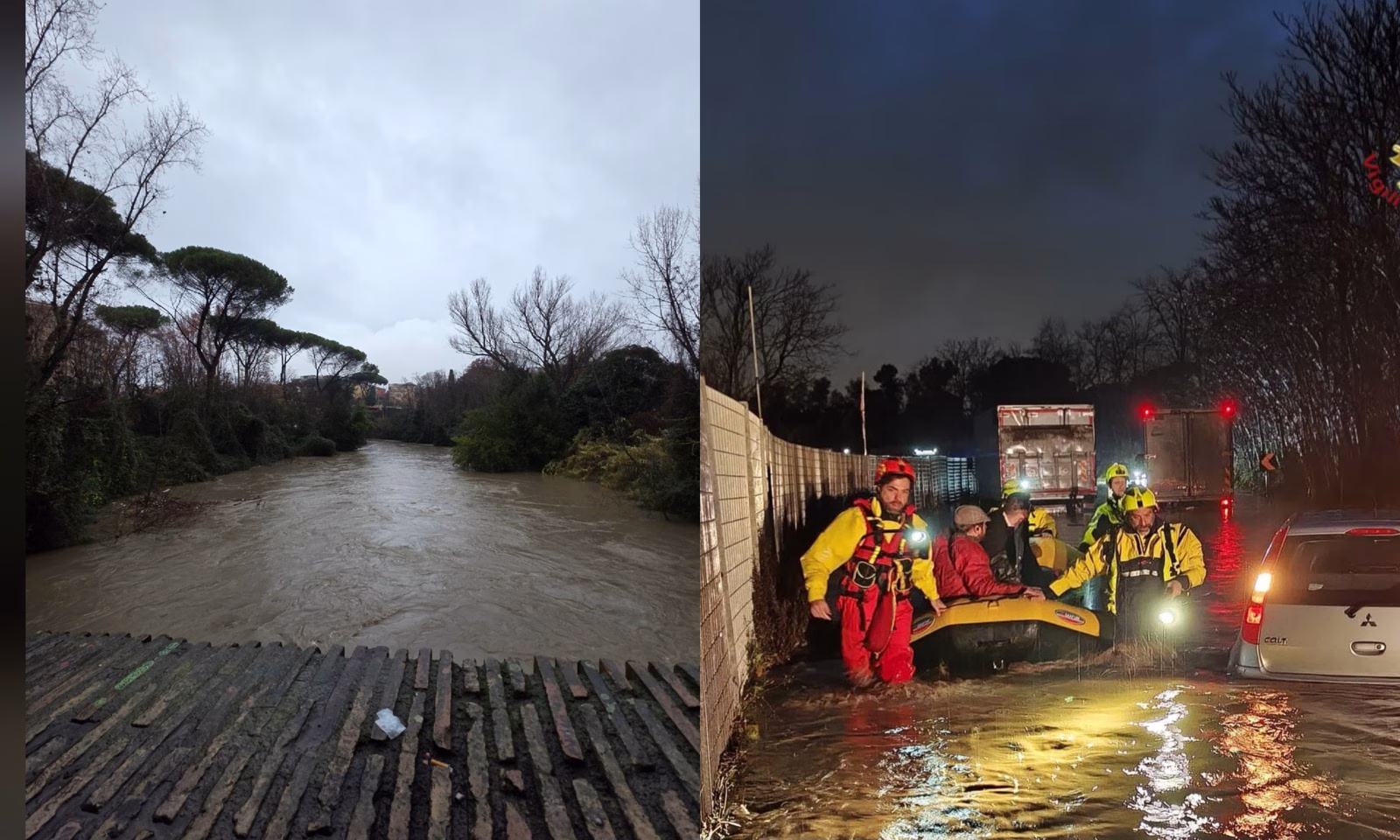 La sala operativa del Comando di Roma ha inviato questa notte alle 2:40 circa, in via di Trigoria 82, la squadra di Pomezia 22/A con il nucleo sommozzatori dei Vigili del Fuoco a causa di allagamento in una abitazione. L’appartamento era posto al piano seminterrato e all’interno si trovavano due giovani di 21 e 24 anni impossibilitate ad uscire. L’acqua aveva ormai raggiunto il soffito, mancavano solo 50 cm. I Vigili del Fuoco quindi hanno tagliato le inferriate poste a protezione delle finestre, facendo accesso per raggiungere le due ragazze, intrappolate in stanze diverse. Entrambe sono state soccorse ed erano in stato di ipotermia. Alle 6:00 invece ,in via Ardeatina 628, i Vigili del Fuoco della Tusc2 (12/A) e nucleo Saf, sono intervenuti per soccorrere due camionisti rimasti intrappolati all’interno dei loro mezzi pesanti a causa dell’ allagamento della sede stradale.